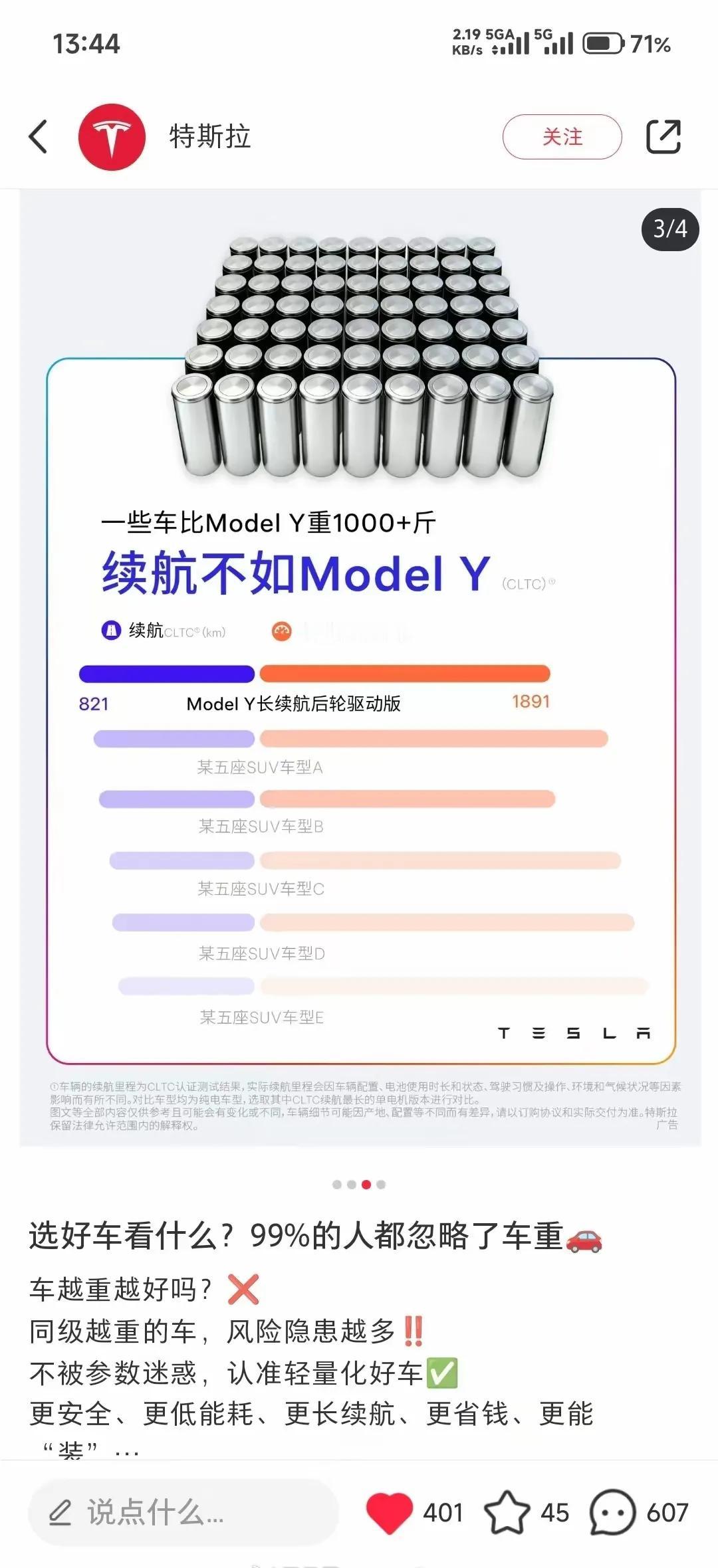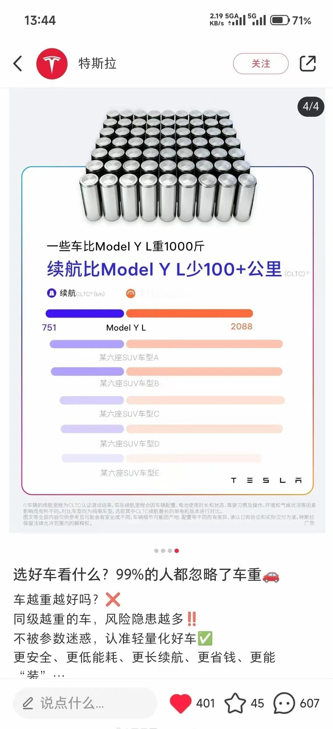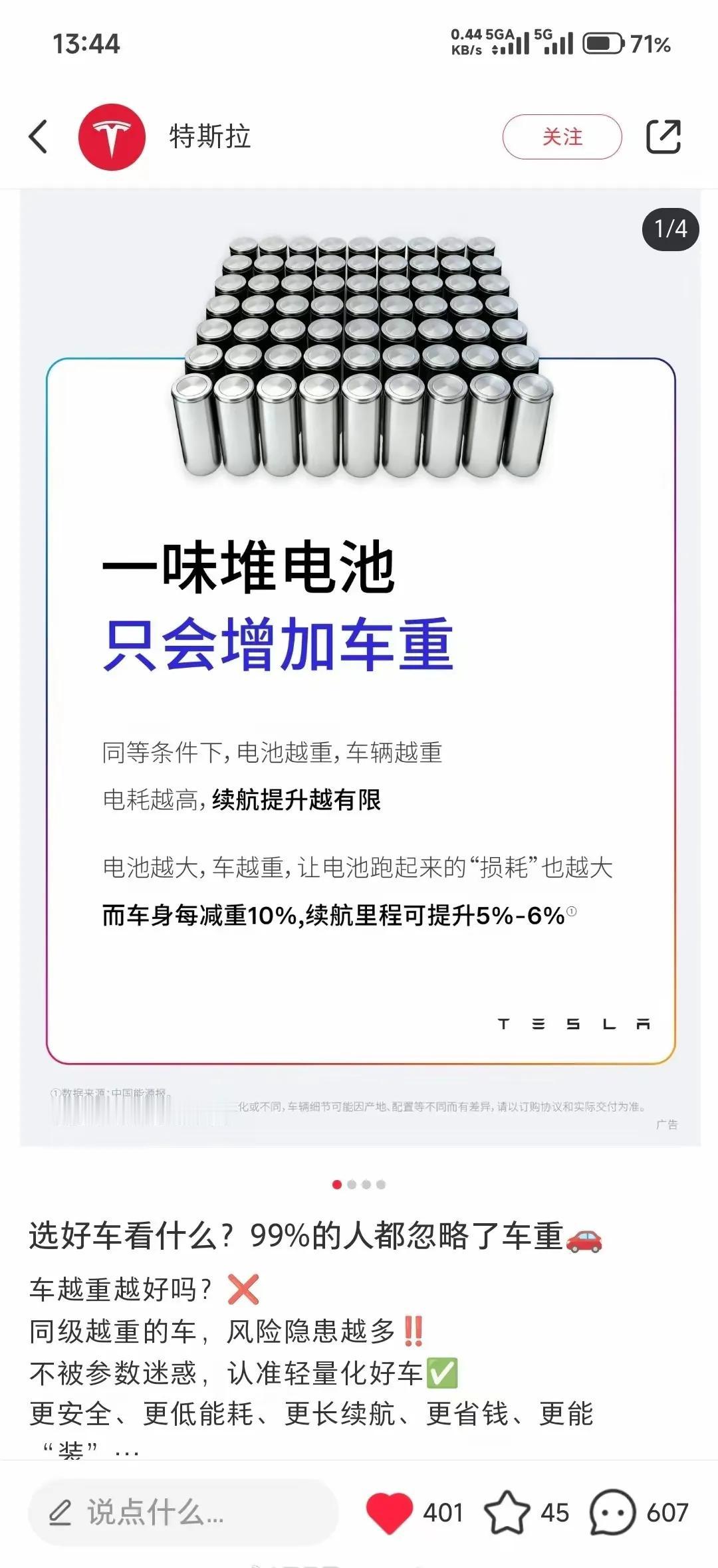 特斯拉说一味堆电池只会增加车重和能耗? 其实国产车企业最大问题不是加电池,而是加其它配置,彩电冰箱大沙发车重自然提上去了,如果和特斯拉一样毛坯,其实电耗也应该差不多,现阶段,增加续航只能加电池,电机那点转化的差距很小。 但是车身轻量化国产车也在做了。