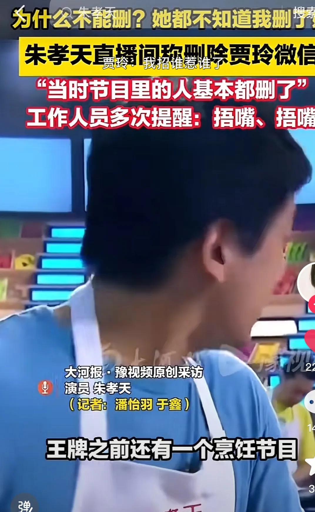 朱孝天直播说:“什么贾玲也删我,我就不能删贾玲,我告诉你,她都不知道我删了她。王牌之前还有一个烹饪节目,当时节目的我基本都删了。”网友:想起那句话了,有的人不红是有原因的他到底想干嘛,又想吃娱乐圈那碗饭又不想和他们社交