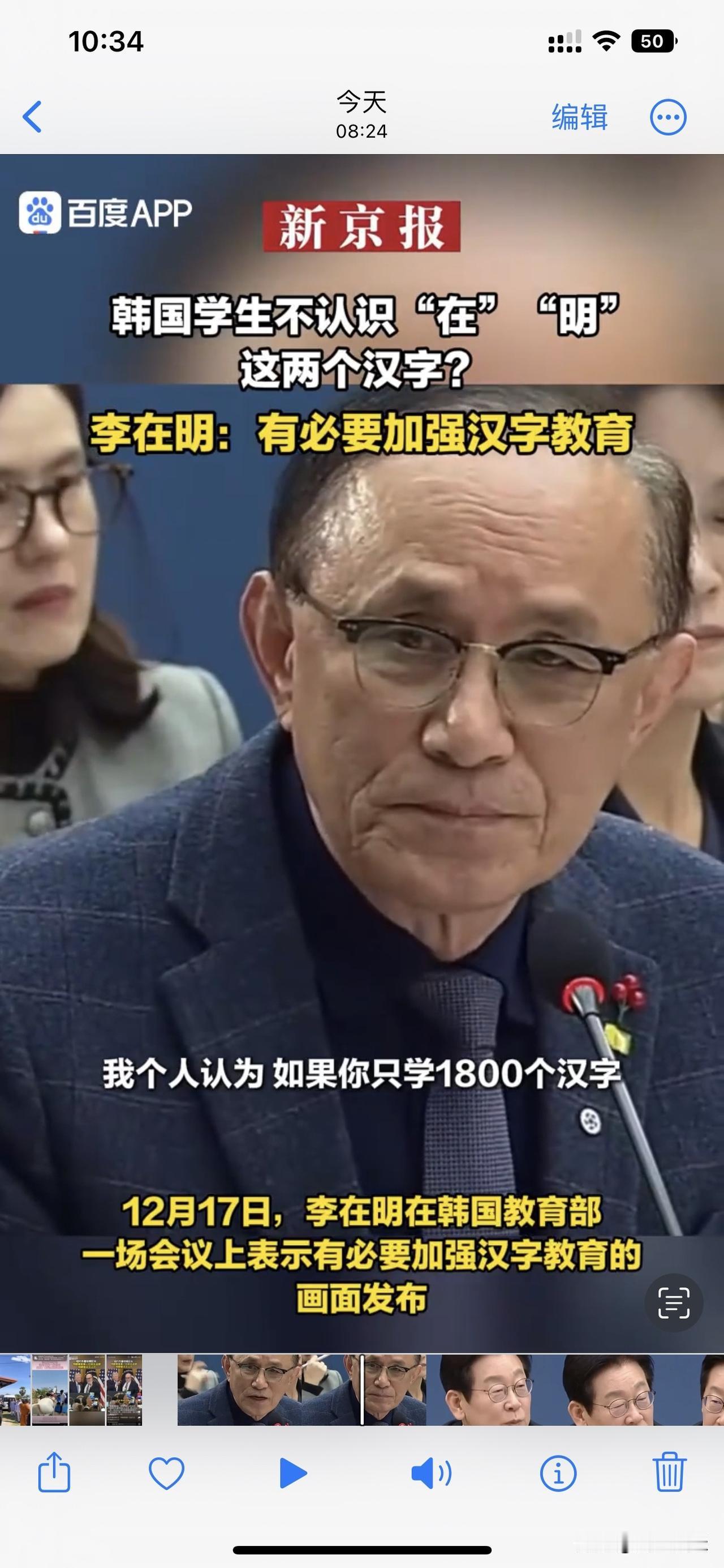 韩国学生不识“在”“明”?李在明疾呼加强汉字教育 最近,韩国古典翻译院院长的一番话让不少人感到震惊。“现在的学生,竟然连‘在’‘明’这两个最基本的汉字都不认识了。”面对这一现状,韩国总统李在明明确表示:“有必要加强汉字教育。” 在韩国,汉字与韩语的关系,早已深度融合,难分彼此。许多韩国语言学者都指出,现代韩语中有超过七成的词汇源自汉字,尤其是法律、历史、哲学等领域的核心术语,几乎都使用汉字词来表达。 正如那位院长所说:“学习一些汉字,确实能让我们对韩语的理解更深刻。”比如“在”字,对应韩语中的“재”,代表着“存在”或“位于”,是构建时间和空间概念的基础;而“明”字对应“명”,蕴含光明、智慧之意,是无数韩语复合词的灵魂。 试想,如果连这两个字都不认识,又如何能真正理解“在明处”、“明理”这些常用词背后的深意?李在明强调:“汉字是我们理解韩国文化精髓的一把钥匙,忽视它,无异于斩断自己的历史纽带。” 然而,现实却令人担忧。自上世纪70年代“去汉化”政策推行以来,汉字在韩国教育中的地位日渐边缘化。如今,大多数韩国学生只在初中阶段接触有限的汉字课程,且缺乏系统训练。 调查显示,韩国大学生能识读的常用汉字甚至不足500个,远低于过去动辄上千的水平。这种断层带来的影响是全方位的。年轻人读不懂古典文献,对现代报刊中的汉字词一头雾水,甚至对“忠孝仁爱”等传统伦理观念的理解也愈发肤浅。 李在明主张加强汉字教育,绝非一时兴起,而是基于现实的清醒认知。汉字是提升韩语能力的“捷径”。掌握了汉字词的结构逻辑,记忆词汇会变得事半功倍,理解复杂句子也能豁然开朗。比如“民主化”这个词,拆解成“民”和“主”,就能更透彻地把握其社会意义。 汉字教育是维系文化认同的“纽带”。韩国的姓氏、地名、历史事件,无不与汉字紧密相连。若抛弃汉字,年轻一代将逐渐与祖辈的精神世界割裂。再者,在全球化时代,汉字更是韩国与东亚文化圈交流的重要桥梁,为学术、经济合作提供了共同的语言基础。 当前,韩国社会已有不少成功的实践案例,证明了汉字教育的价值。首尔某中学开设了一门“汉字与韩语的奥秘”选修课,学生们通过探究汉字的本义,意外发现韩文写作变得更有逻辑和深度。古典翻译院近年来推广“汉字融入生活”项目,鼓励在日常对话中使用汉字词,参与者纷纷表示:“原来韩语的语法和汉字有这么多联系!”这些案例告诉我们,汉字绝非学习的负担,而是打开韩语潜力的一把钥匙。 李在明 韩国汉字文化