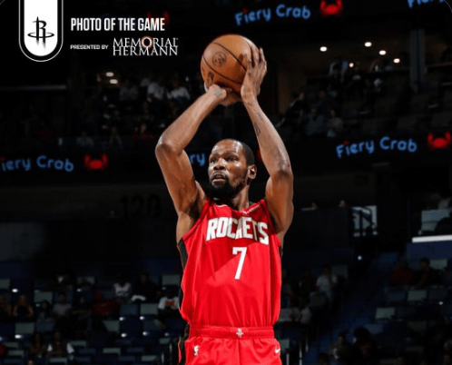 本场比赛,火箭球员凯文-杜兰特出战42分钟,15投12中,其中三分球6投4中,罚球4投4中,空砍32分7篮板2助攻1抢断4封盖。