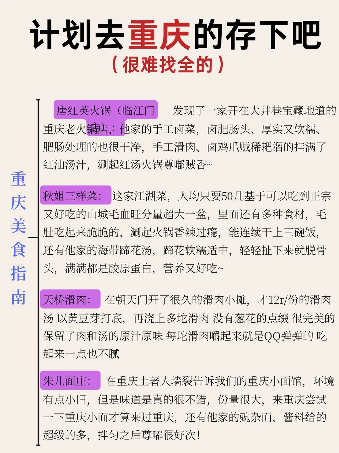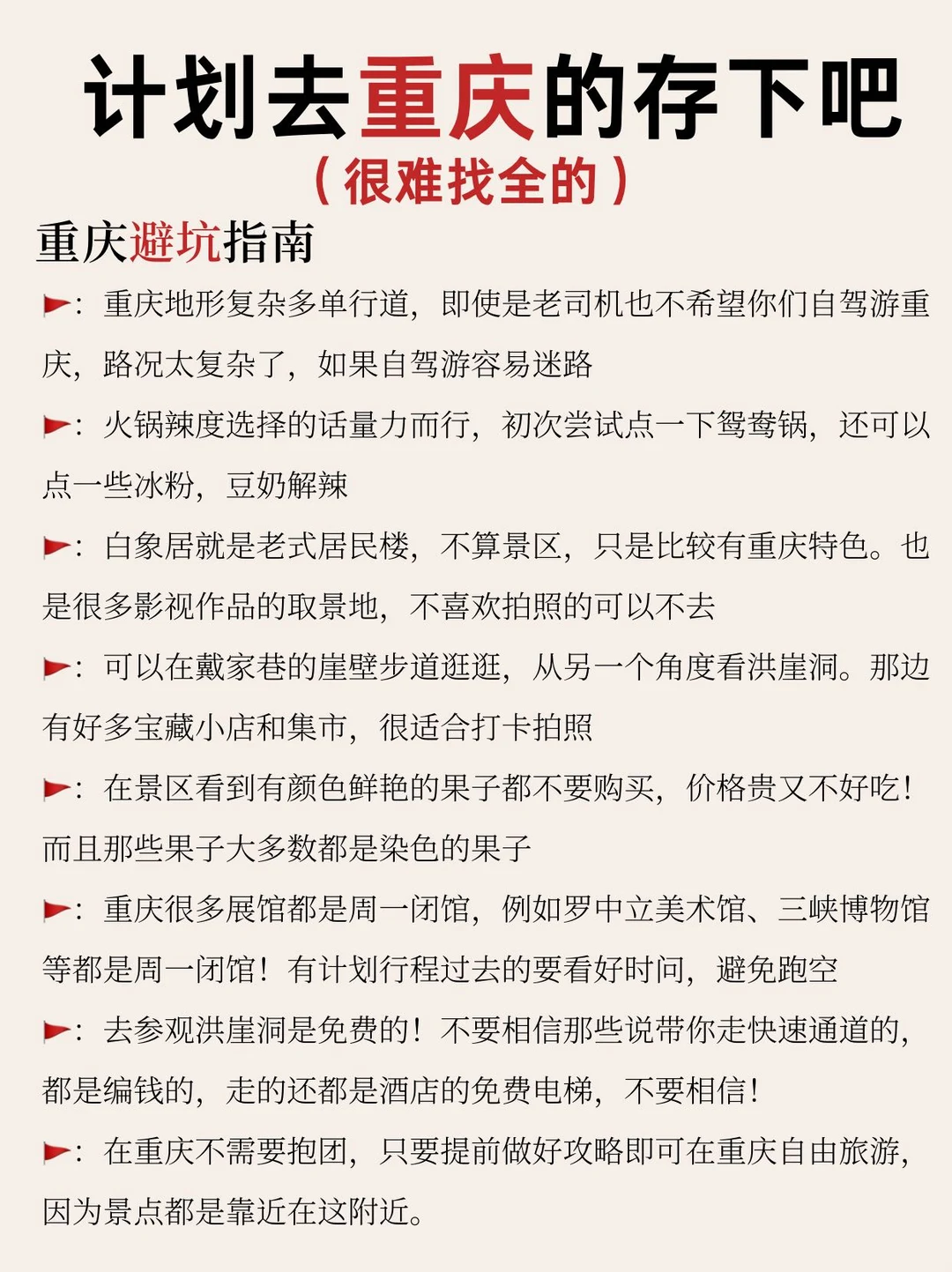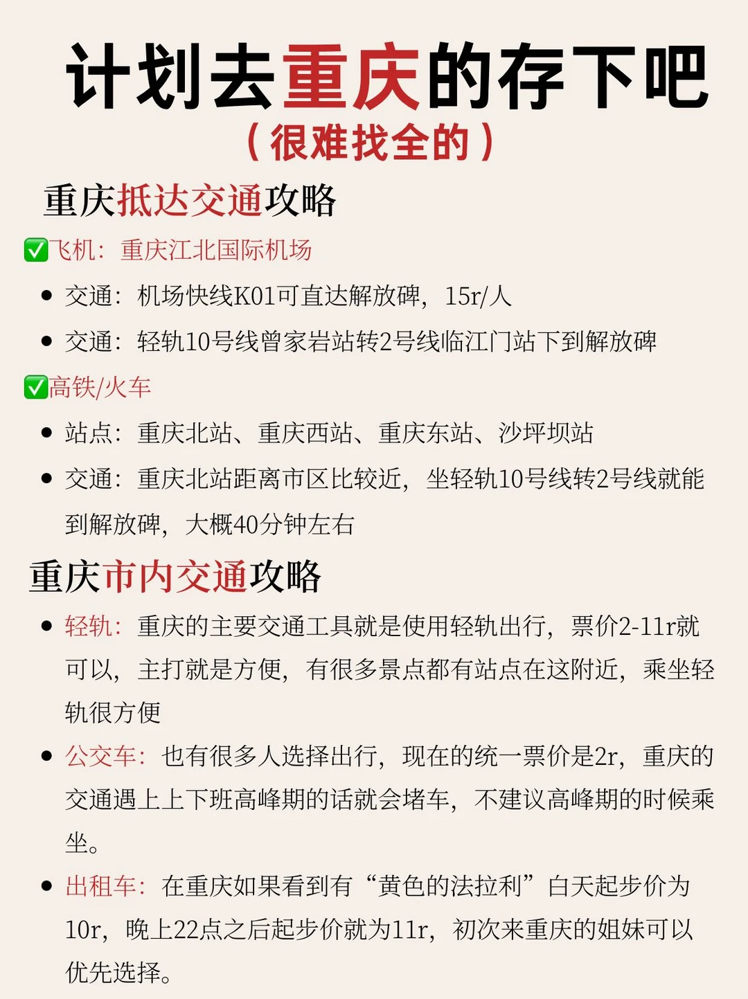 计划12月到1月去重庆旅游的朋友们‼ 这份攻略一定要存下关于重庆景点予约、重庆美食、重庆交通、住宿等方面的一些建议 我已经整理好了 ,先🐎后看哦