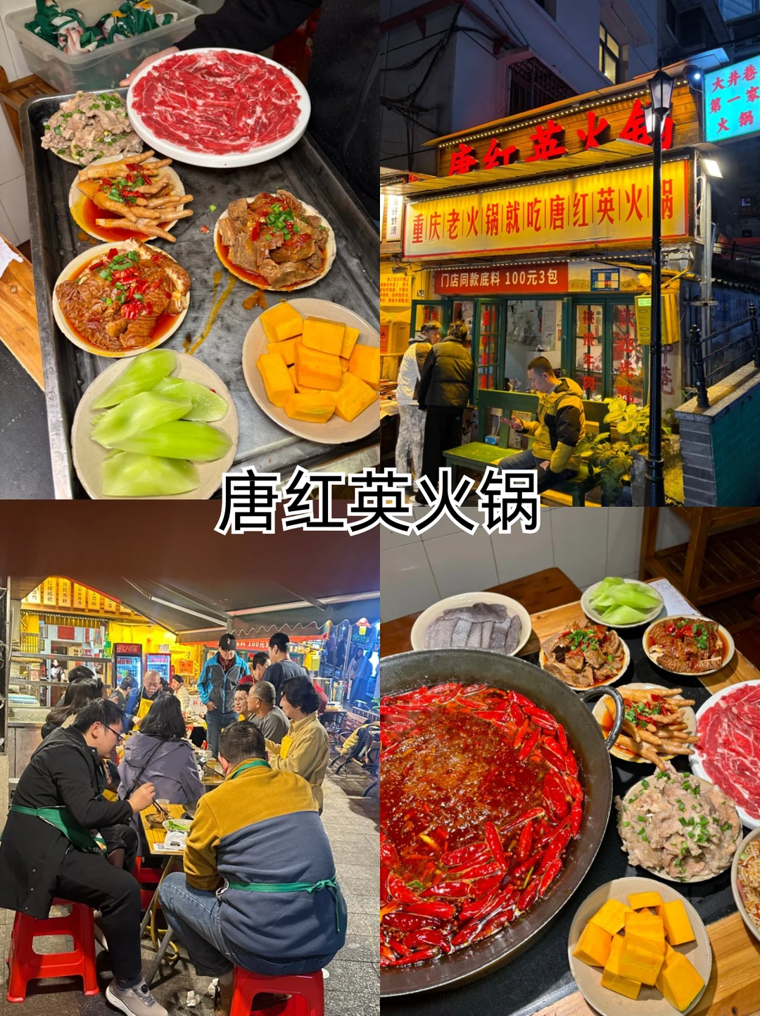 📍唐红英火锅(临江门店):一家开在大井巷宝藏地道的重庆老火锅店,他家的手工嫩牛肉、卤肥肠头、卤耙鸡爪、鲜毛肚厚实又软糯涮火锅香~
