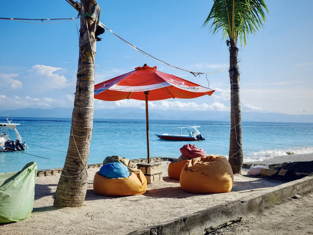 岛屿的日光,是流动的蓝与绿,从藤蔓垂落的花影中醒来,白与粉在阳光下柔软交织。沿着小路走向高处,遇见一家看海的小餐馆,风吹动椰子,海平线在远方静默闪光