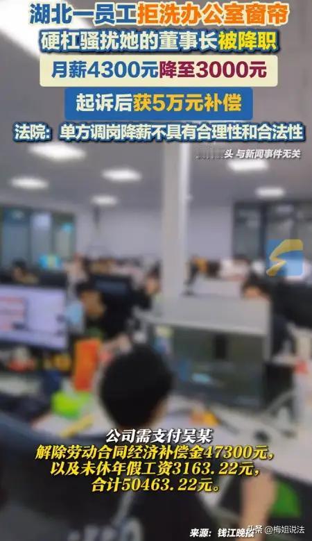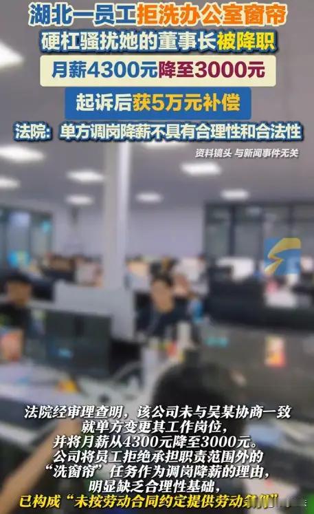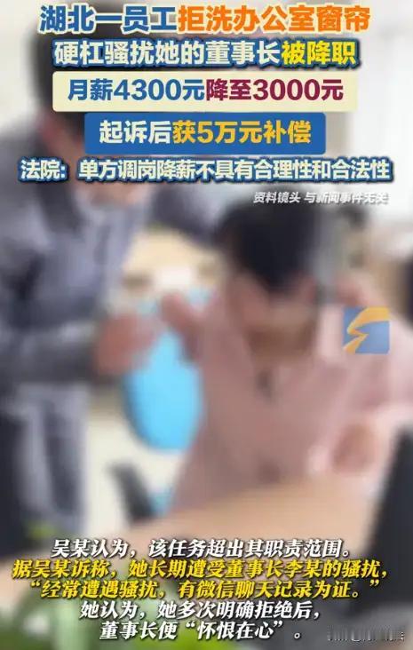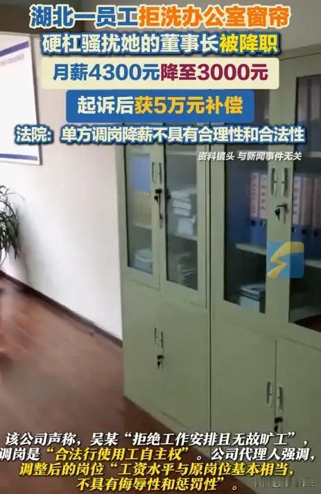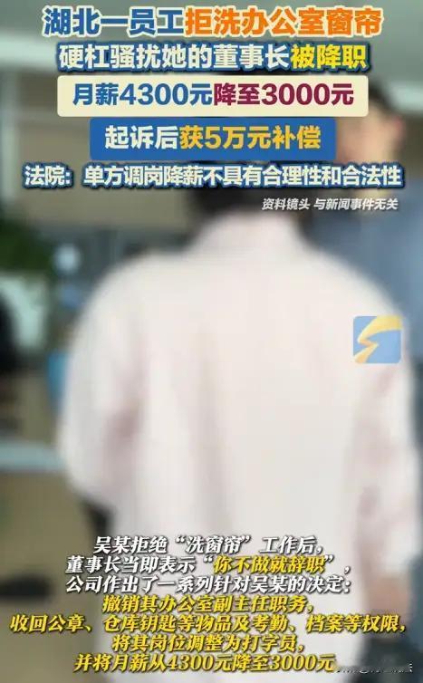 湖北大冶,这起职场权力与人性较量的故事正在引发广泛关注。吴女士,作为公司办公室的副主任,本应专注于自己的本职工作,却被董事长以“清洗窗帘”为名难以置信地要求承担本不属于她的杂务。面对明显的权力骚扰与不合理要求,吴女士选择了勇敢说“不”,这本该是每个职场人维护自我尊严的正常反应。 然而,现实却远比想象中残酷。果断拒绝后,吴女士遭遇了职场“冷暴力”——职位被撤销、薪资骤降、工作内容被“降格打击”,甚至办公室的门锁都被悄然更换,彻底将她隔绝在原有的工作环境之外。更令人震惊的是,这一切背后是董事长长久以来对她的骚扰与报复心态。面对不公,吴女士决定走上法律道路,勇敢地将公司告上法庭,寻求正义的声音。 这不仅是职场上的一场冲突,更是关于权力滥用和性骚扰问题的深刻写照。吴女士用行动告诉我们:任何职业人都不该忍受不合理的骚扰和职权的滥用。权利与尊严,是每个人不可剥夺的底线。 透过这起事件,我们不得不思考:当权力成为压迫的工具,当职场的公正被个人意愿左右,我们如何保障每一位员工的权益?企业文化和监管机制是否足够健全来保护弱势群体?更重要的是,作为旁观者的我们,是否应该为这些勇敢发声的人撑起一把法律和道德的伞?职场公平性 职场差异