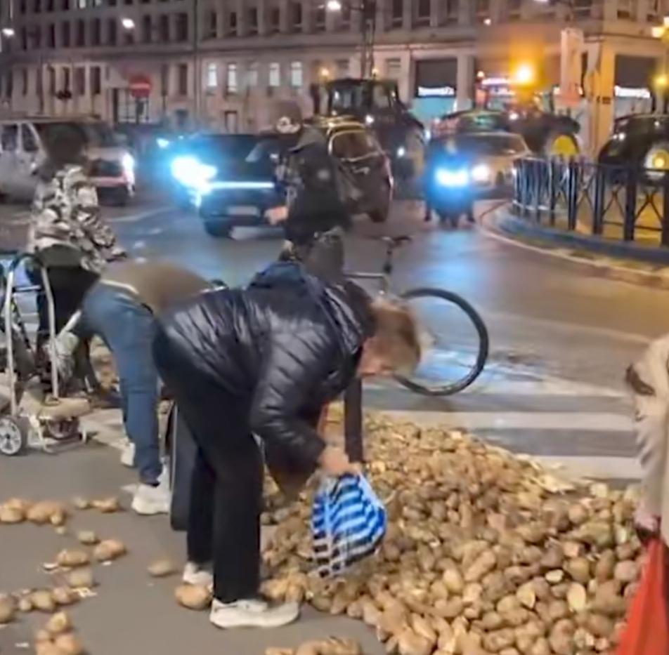 欧洲还是有很多会过日子的人! 当抗议人群从比利时布鲁塞尔欧盟总部前散去,他们留下的“武器”土豆,被当地一些市民纷纷捡拾起来,拿回家做饭吃。 他们拿着袋子,认真挑选这白白得来的食材,这一幕看着让人倍感滑稽。 欧盟成员国数千农民聚集在这里,进行抗议活动,并没有引起太大的骚乱。