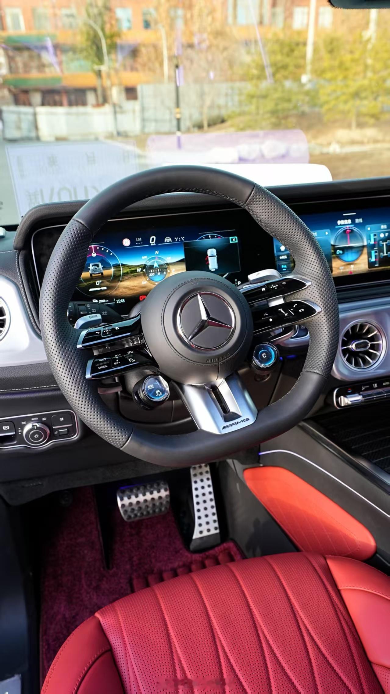 白色韩版G450d怎么改?原地变身暗夜熊猫G63🐼22寸大脚+六活塞卡钳稳稳拿捏AKPA阀门一开 沉默中瞬间爆发帝王紫前挡太绝了 阳光下暗涌的杀气红内菱格+旋钮方向盘 战斗舱直接拉满暗夜字标腰线是灵魂一笔西装暴徒已就位这波改装 算不算教科书级别?