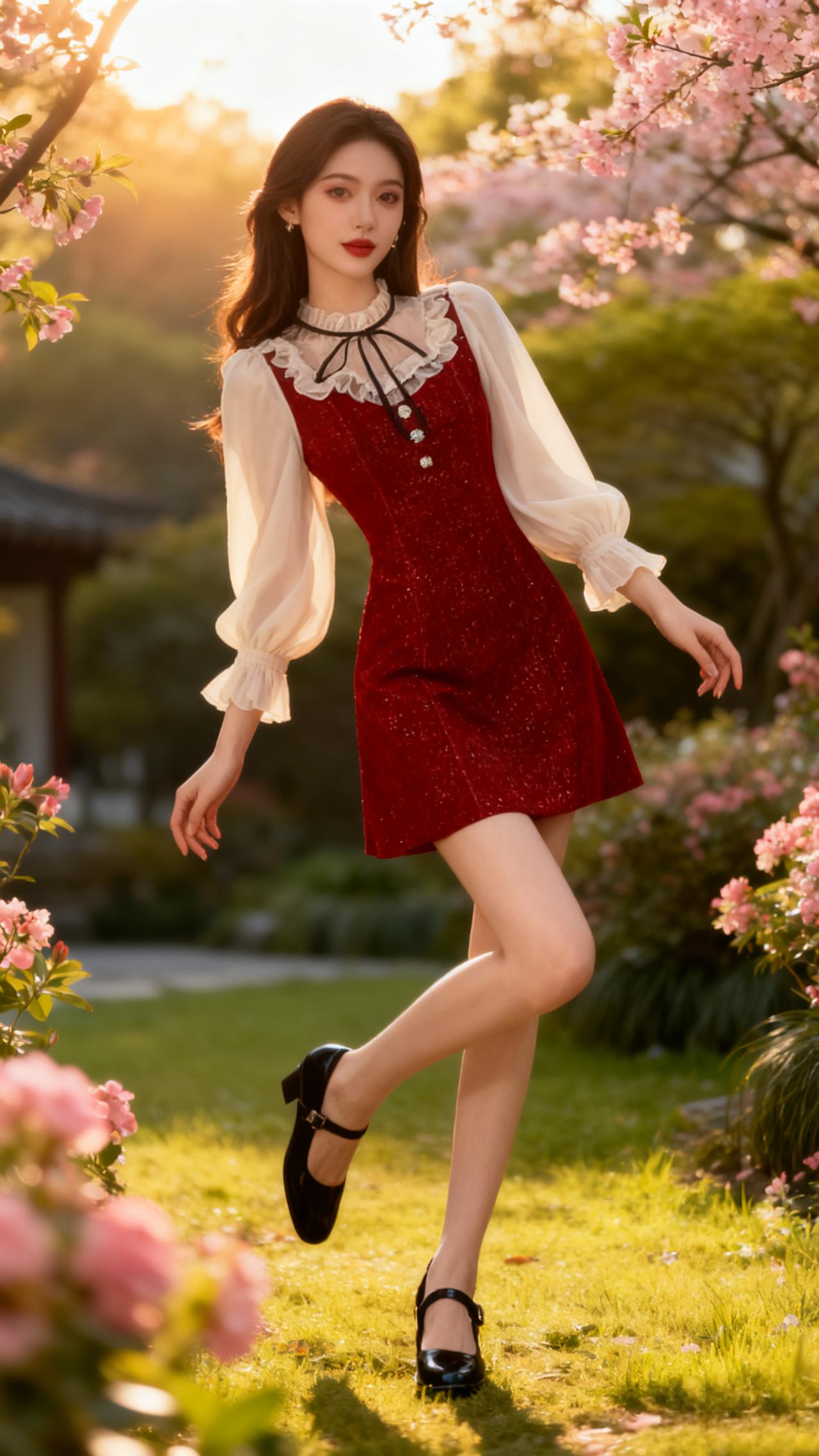 红色连衣裙 新年红色连衣裙 红裙子 裙子搭配 甜美风