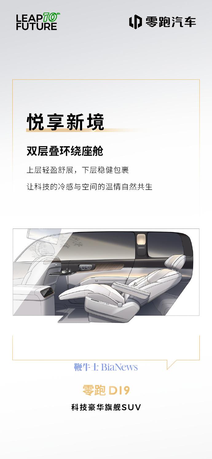 今日,零跑汽车官宣,零跑D19内饰设计概念首度公开,其采用双层叠环绕座舱和超椭圆数字曲面。