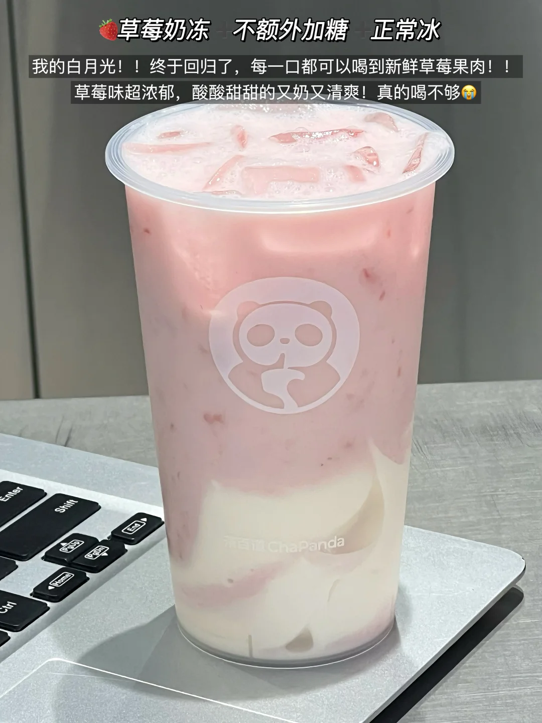 我的白月光!!终于回归了,每一口都可以喝到新鲜草莓果肉!!草莓味超浓郁,酸酸甜甜的又奶又清爽!真的喝不够😭