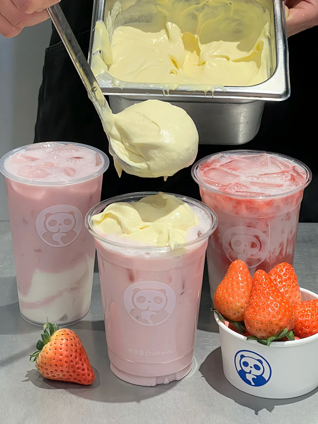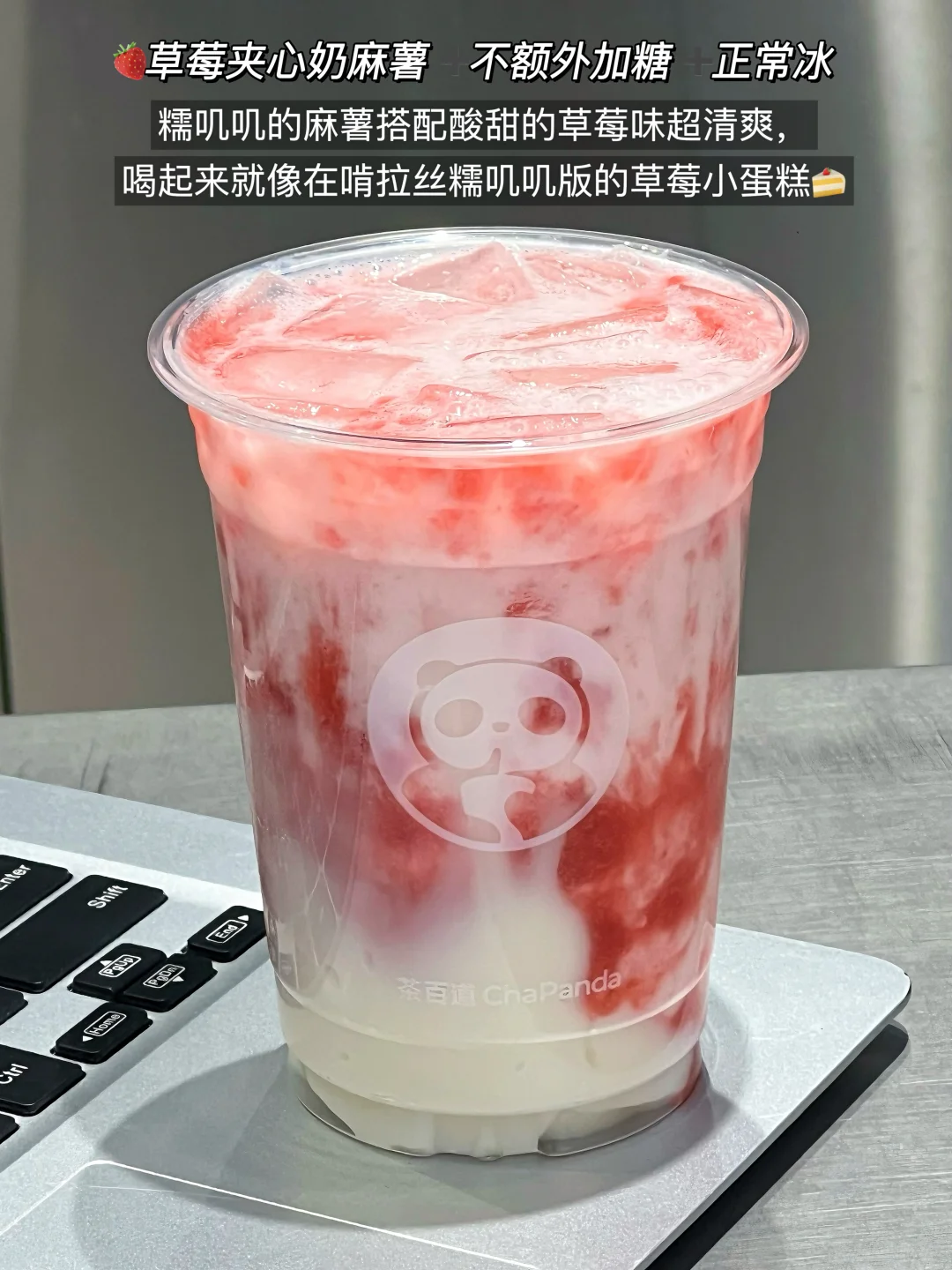 糯叽叽的麻薯搭配酸甜的草莓味超清爽,喝起来就像在啃拉丝糯叽叽版的草莓小蛋糕🍰