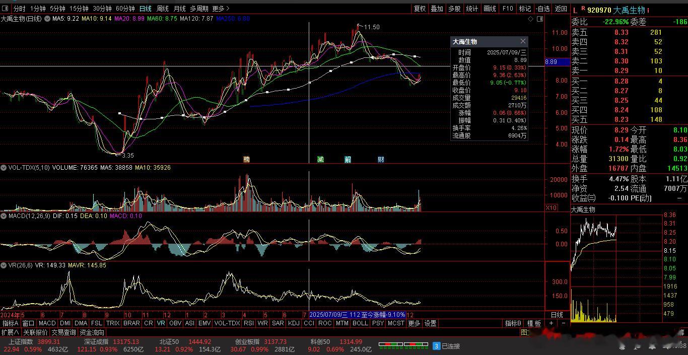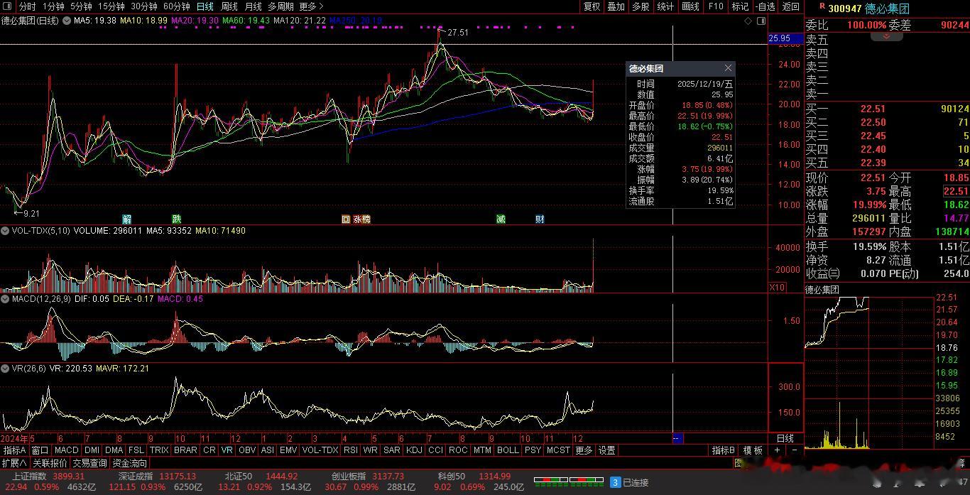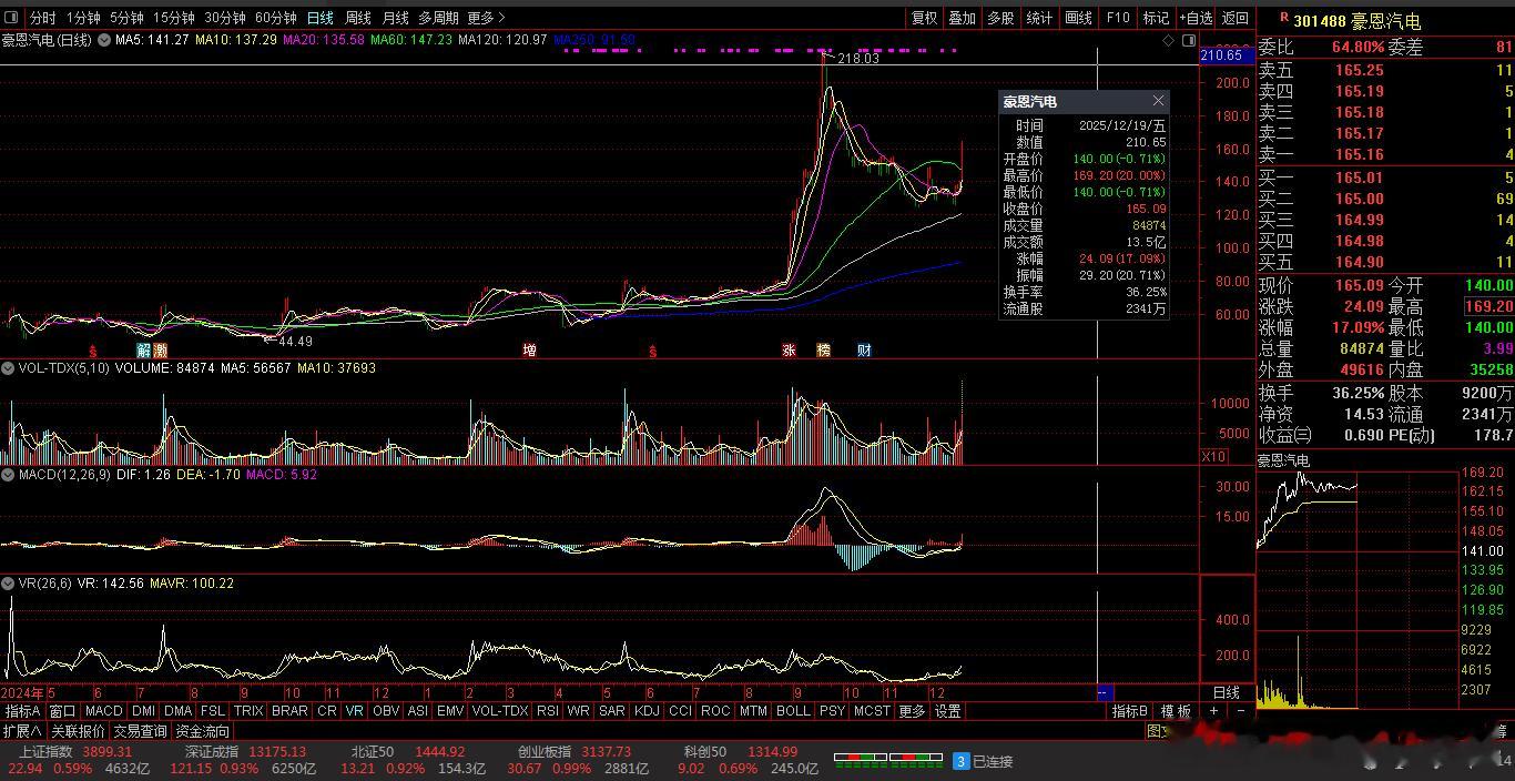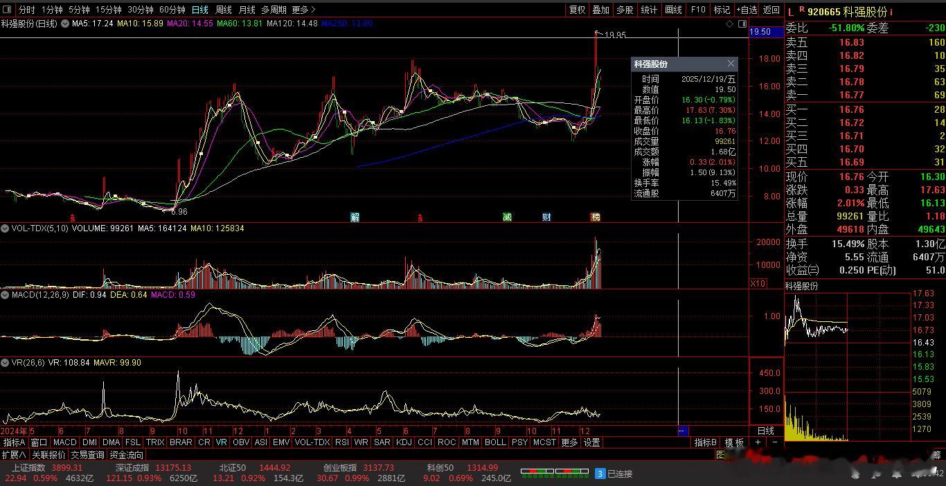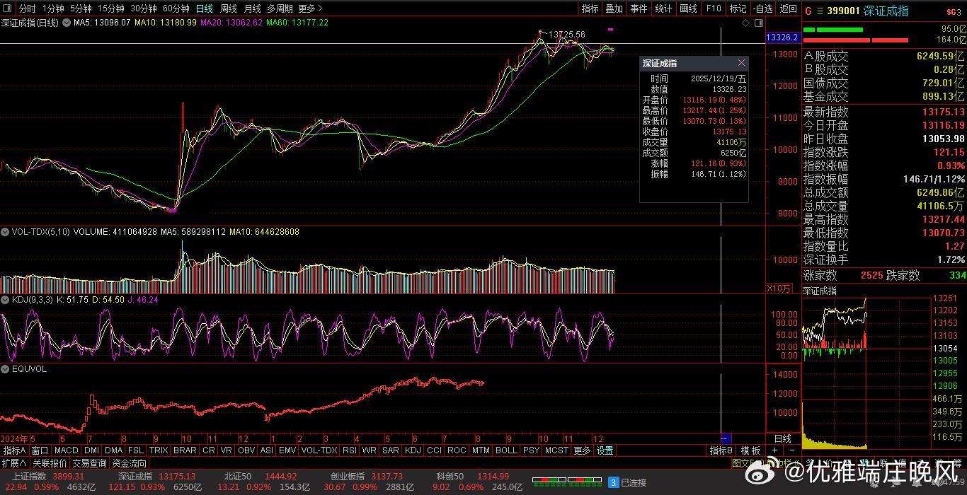 【财富晚茶】午盘透析(12.19):北证涨幅0.92%:零售反弹影视回调导语:作者系《网易号》优质财经领域创作者。曾经原创作者和知名网易号旅游领域创作者。大跨度行业等的写作,颇受网友喜爱。作品发表于2025.12.19.12:18 优雅端庄晚风。【内容概述】今日股市午评:截止11:30:沪指:贡献4根阳线1阴线。深指:贡献2根阳线3阴线。沪指突破:阻力位:03888点。沪指突破:支撑位:03856点。深指突破:阻力位:13205点。深指突破:支撑位:13053点。追寻盘面:沪深强势一往无前,尾盘头部震荡突破。一、透析市场:风口公司,上下起伏920970 大禹生物 盘中 -01涨1、突破四年箱底视野盘面:前期双低:逐级盘升。2025-12-19 截至11:30 股价报收:8.29元。该股上涨:1.72%。成交总量:31300手,成交金额:2571万元。总换手率4.47%,观总市值:9.30亿元。流通市值:5.88亿元。2、饲料添剂翘楚主营业务:饲料添加剂-饲料兽药的产和销售。公司品牌:微生态制剂技术渠道优势企业。3、营收优利减亏财报透视:2025-09-30 三季度报:公司营收:9245.317万 同比增3.59%。公司净利:-1071.6271万 同比增33.51%。二、沪深红盘:多方强势,喜剧股市今天目击:沪深北市:早盘:高开二针,七涨三跌。尾盘:一跌三涨,次高红盘。看点之一:两市股指:盘中高开:强势拉升。看点之二:二朵金花:深创两指:涨幅近1%。看点之三:沪深北市:半日成交:11036亿元。盘面追踪:4673股飘红。三、沪深阳棒:个股强势,赚钱效应沪深追踪:截至午间:市场收盘:沪指涨0.59%报3899.31点,深指涨0.93%,创指涨0.99%,北证50指涨0.92%,沪深北市:11036亿元。四、盘面观察:零售脉冲,影视回调1、板块扫描透析沪深板块:板块走强:零售、地产、汽车、半导体、钢铁、医药等。板块回调:影视、贵金属、保险等。可控核聚变、海南自贸、无人驾驶概念等活跃。2、个股涨跌起伏沪深北市:多空遭遇。4673上涨,71个股涨停板。700股下跌,5跌停板。沪深北市:合计成交:11036亿元。午盘视野:沪强深弱触底反弹,尾盘高位杀跌兑现。五、沪深涨跌:三甲前茅,安不忘危1、今日涨幅谁家主旋律:天经地义:风口股票涨停板001325 N元创 301123 奕东电子 920665 科强股份第一、涨幅榜眼排行榜-1:001325 N元创主营业务:橡胶履带类产品研产和销售。公司品牌:中国农业机械零部件龙头企业。排行榜-2:301123 奕东电子主营业务:FPC、连接器及零组件、LED背光模组等精密电子零组件的研产和销售。公司品牌:CCS工艺行业领先。排行榜-3:920665 科强股份主营业务:高性能特种橡胶制品的研产和销售。公司品牌:列车风挡棚布等细分行业头部企业。第二、综评榜技术看盘-1:920665 科强股份。潜力股票-1:920665 科强股份:列车风挡棚布等细分行业头部企业。风险股票-1:暂时没有。2、今日跌幅谁家主旋律:摇摇欲坠:弱势股票涨停板001325 N元创 68688802 C沐曦 688790 C昂瑞跌幅榜-1:001325 N元创主营业务:橡胶履带类产品研产和销售。公司品牌:中国农业机械零部件龙头企业。跌幅榜-2:68688802 N沐曦主营业务:人工智能训练和推理-通用计算与图形渲染领域全栈GPU产品研产和销售。公司品牌:国内高性能GPU产品领军企业。跌幅榜-3:688790 C昂瑞主营业务:射频前端芯片-射频SoC芯片-其他模拟芯片的研产和销售。公司品牌:国内头部射频前端头部企业。六、创作不易:优质网易,财经作者投资投机迷茫之中:给予尽可能有帮助:资本市场风险自负。(优雅端庄晚风《网易号》财经领域创作者和原创作者 违者必究)