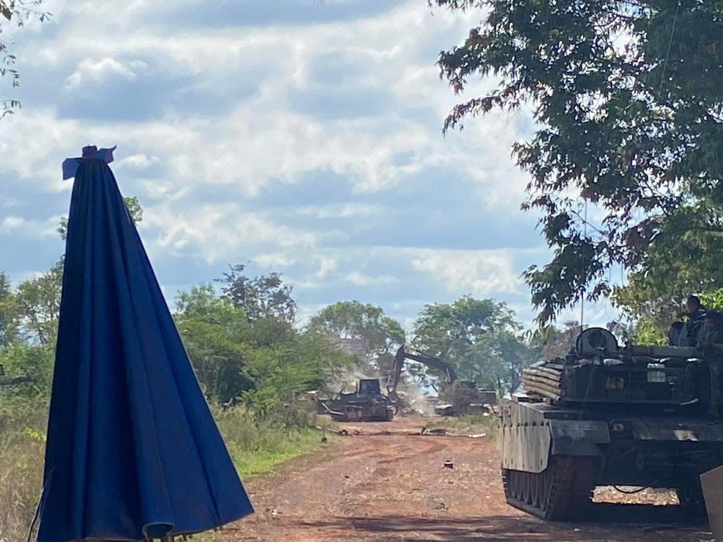 泰柬冲突泰柬冲突13条战线军迷天地东南亚军情 泰国皇家陆军第2工兵团2型已经进入了刚被蹲下不久的安码山口地区,推平了柬埔寨人的纪念碑和遗留的残骸以及原本的市集准备开始下一步的重建。这看着就是当做已经是自家的地盘来建设并且不打算走了。
