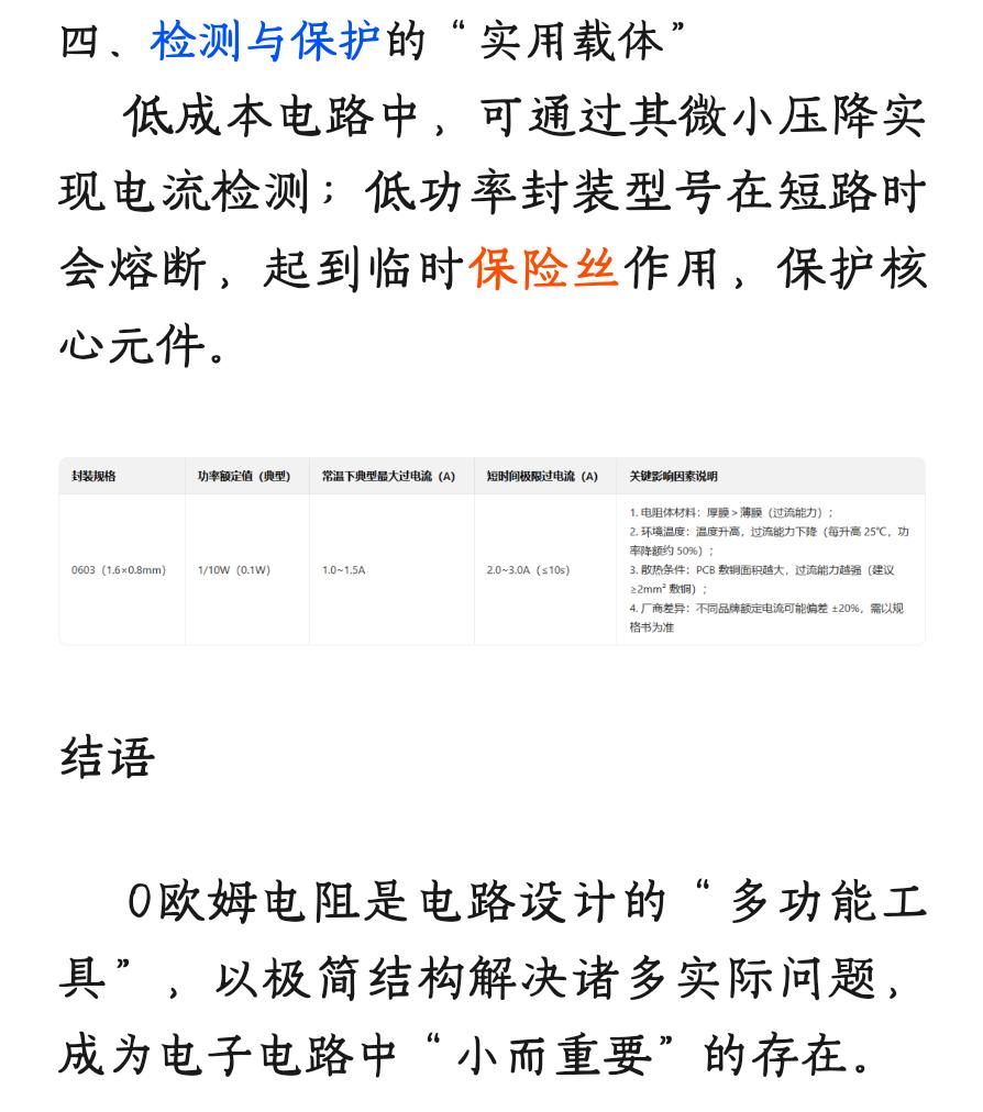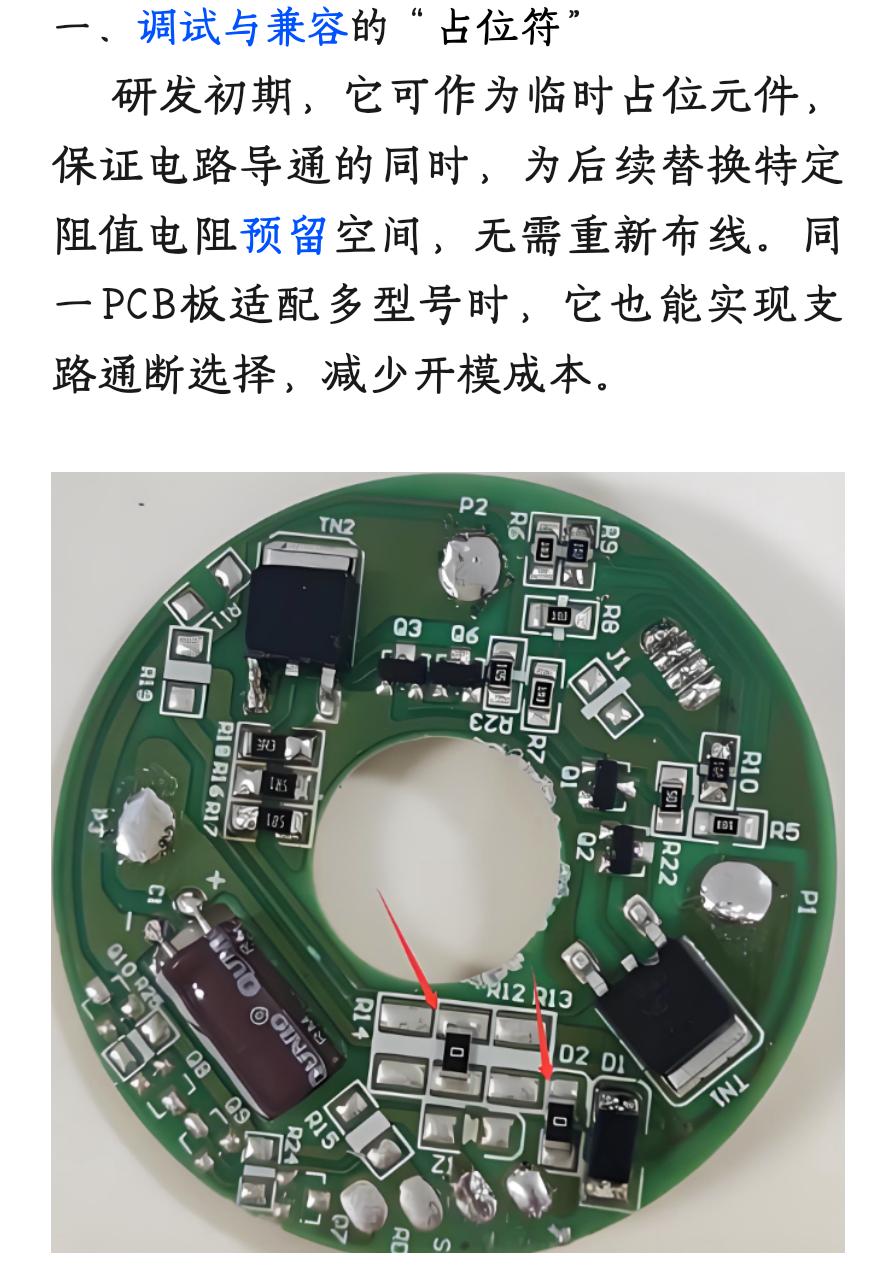 在电子电路中,0欧姆电阻常被初学者视作“多余元件”,实则它阻值趋近于零的特性,使其成为电路设计中灵活实用的关键元件,作用集中于调试、布局与功能扩展。 一、调试与兼容的“占位符” 研发初期,它可作为临时占位元件,保证电路导通的同时,为后续替换特定阻值电阻预留空间,无需重新布线。同一PCB板适配多型号时,它也能实现支路通断选择,减少开模成本。 二、抑制干扰的“边界线” 其微弱的寄生参数,能在不影响导通的前提下衰减高频干扰。串联在不同功能模块间,可隔离数字与模拟电路等的相互干扰,提升系统稳定性。 三、布局优化的“搭桥件” PCB布线遇交叉或绕远问题时,它可作为导线替代件实现“跳接”,缩短信号路径,避免干扰,符合标准化设计要求。 四、检测与保护的“实用载体” 低成本电路中,可通过其微小压降实现电流检测;低功率封装型号在短路时会熔断,起到临时保险丝作用,保护核心元件。 0欧姆电阻是电路设计的“多功能工具”,以极简结构解决诸多实际问题,成为电子电路中“小而重要”的存在。 电路 电子技术 电子元器件 硬件工程师 创作者扶持计划 @DOU+小助手 @抖音记录美好生活 @抖音知识 @DOU+上热门 @抖音创作灵感 @抖音媒体内容优推官 @抖音创作小助手