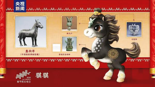 (宝鸡融媒祝嘉)12月18日,中央广播电视总台发布《2026年春节联欢晚会》吉祥物形象——四匹分别名为“骐骐”“骥骥”“驰驰”“骋骋”的骏马,其中“骐骐”设计灵感源于宝鸡出土的西周青铜器盠(lí)驹尊,这是继2024年何尊、2025年银质鎏金如意后,宝鸡出土文物再次融入央视春晚吉祥物形象设计。