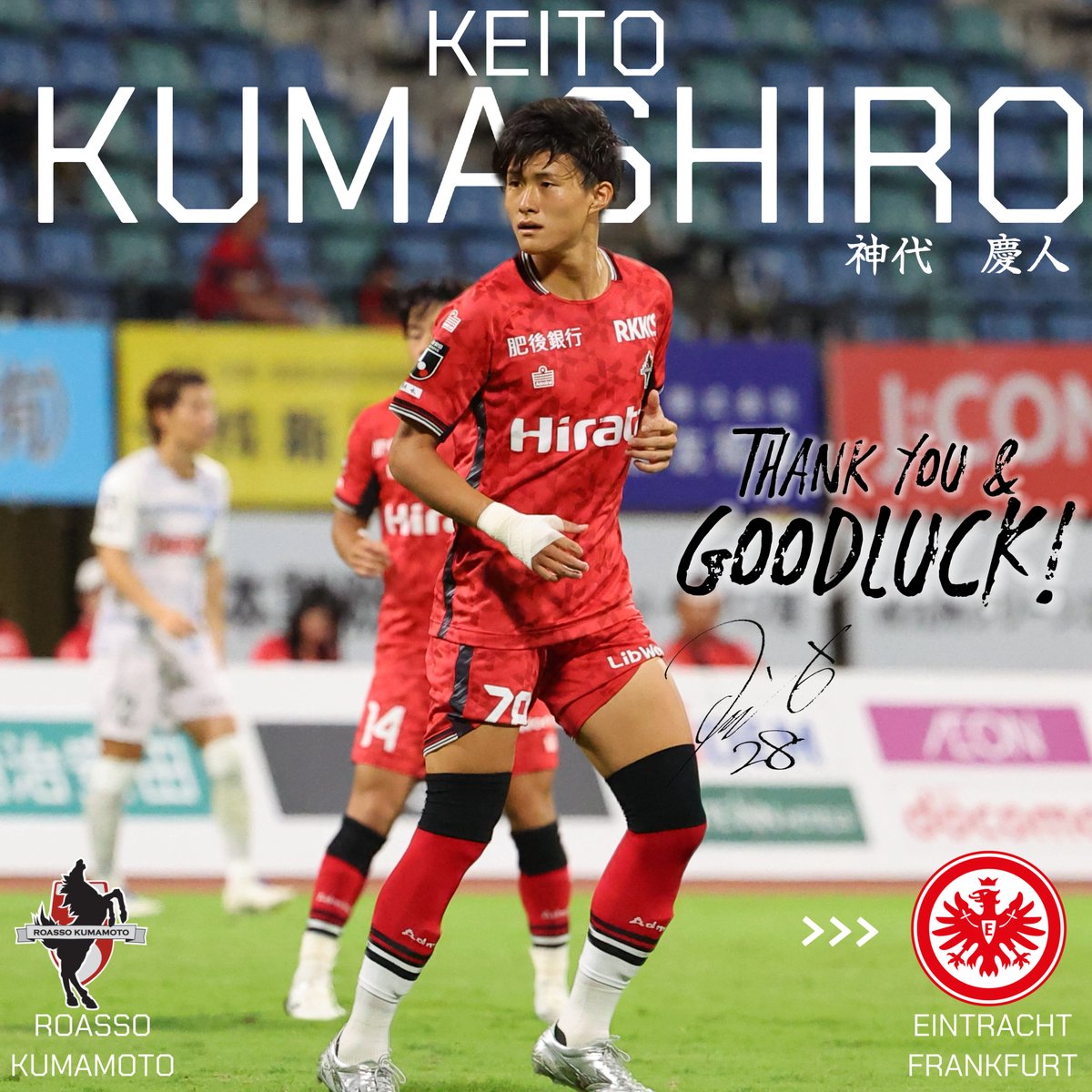 虎扑12月19日讯J3熊本深红官方宣布,队内18岁前锋神代庆人转会德甲法兰克福。