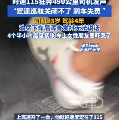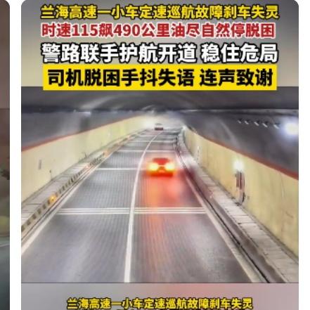 吓出冷汗!刹车失灵狂飙490公里 司机自述惊魂时刻 高速上刹车突然罢工,车子还关不掉定速巡航?23岁司机马世华就遇上了这要命的事儿。 12月17日下午,他开着甘A牌照轿车返乡,115km/h定速行驶时,刹车突然失灵,定速巡航也成了摆设,车子像匹撒欢的野马直往前冲。同车朋友当场吓哭,他头皮发麻,一边报警,一边按4S店指导操作,折腾半天愣是没用。 他只能开双闪、鸣喇叭,借着应急车道小心翼翼躲车,每一秒都像在闯鬼门关。好在定西、陇南两地交警火速驰援,10多辆警车和路政车组成“生命护卫队”,封路、开道、清障,一路保驾护航。 4个半小时后,车子燃油耗尽,车速降到30km/h,终于在强家湾隧道稳稳停下。马世华下车时浑身发抖,腿软得像面条。他直言是交警给了自己第二次生命,目前正和4S店协商退车换车。 交警提醒:遇刹车失灵别慌,紧握方向盘、开双闪报警是关键。你知道哪些车辆突发故障的应急技巧?评论区分享一波!