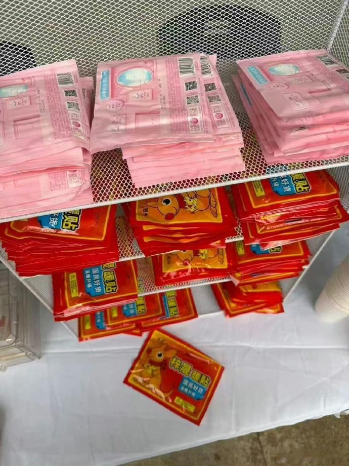 梓渝好用心啊 考虑到粉丝大多都是女生 特意准备了暖宝宝、卫生巾、姜茶、还有定妆补