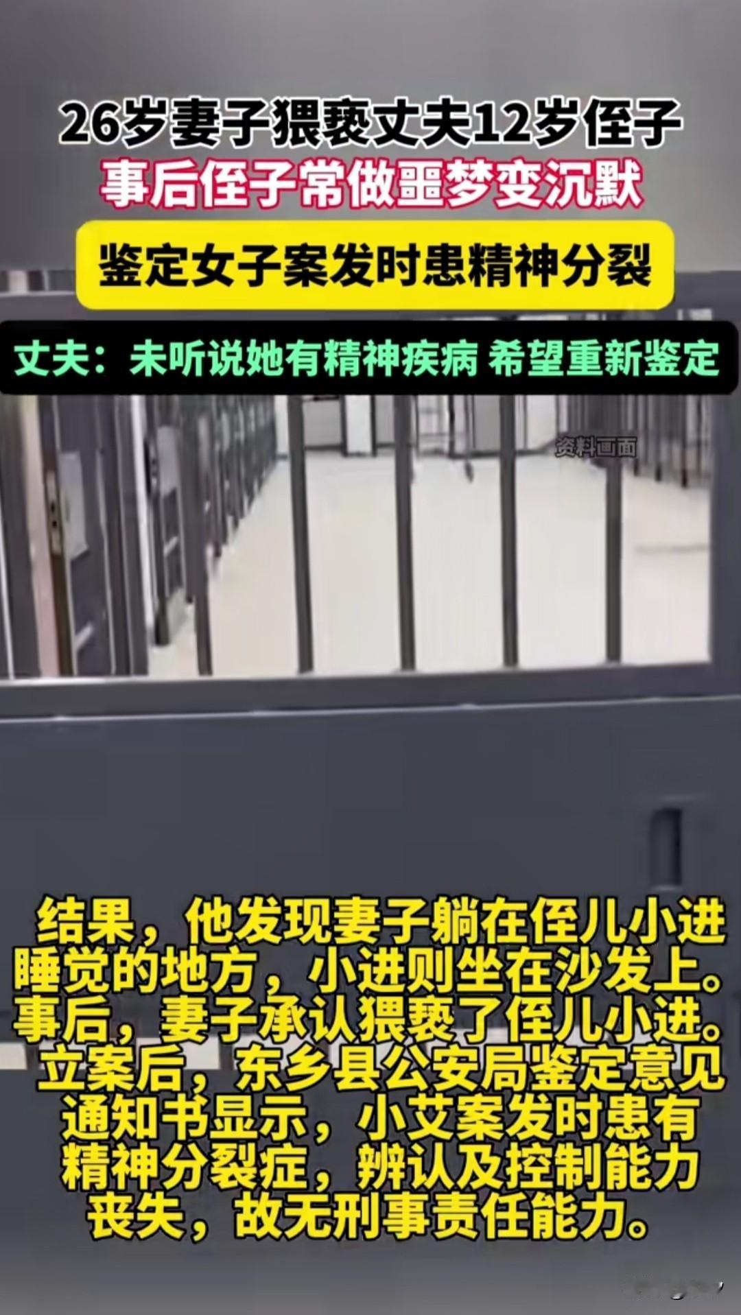 26岁妻子猥亵12岁的侄子,这实在太炸裂了,小电影的剧情却在现实发生了, 甘肃的马先生和妻子正在闹离婚, 两人结婚7年了并且育有3个孩子, 就是今年6月份马先生的侄子回老家看爷爷奶奶,这才让她的妻子小艾发生了这荒唐事, 当天夜里马先生把三个孩子哄睡着, 才发现妻子没有回房间,而且消失的时间有点长,于是到处寻找, 找到侄子的屋子后,不堪的一幕发生了,他看见妻子躺在侄子的床上,侄子却坐在沙发上,他就问了一句, 妻子大方承认她猥亵了侄子,这让侄子羞愤难当,他的侄子才上六年级, 当天夜里马先生觉得丢人也没有打骂侄子,侄子却离家出走了, 家里人找了一夜才在一家宾馆找到,第二天马先生就把妻子送回了娘家,越想越气的马先生便报了警, 叔叔对马先生的妻子立案调查,结果马先生的妻子直接拿出了精神分裂证明,这可让马先生傻眼了,在一起七年也没听说妻子有精神分裂症,这让马先生和他大哥不敢相信, 只能让娘家人照顾马先生妻子,本来闹离婚这回不得不离婚! 大家对于马先生妻子猥亵自己侄子这事怎么看? 婚姻与家庭 猥亵 猥亵男童罪 妇女猥亵