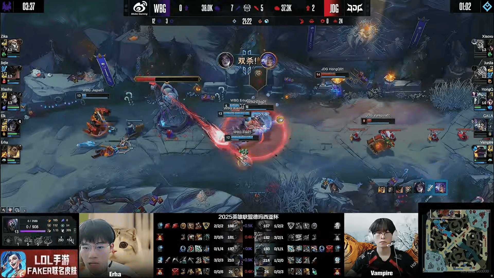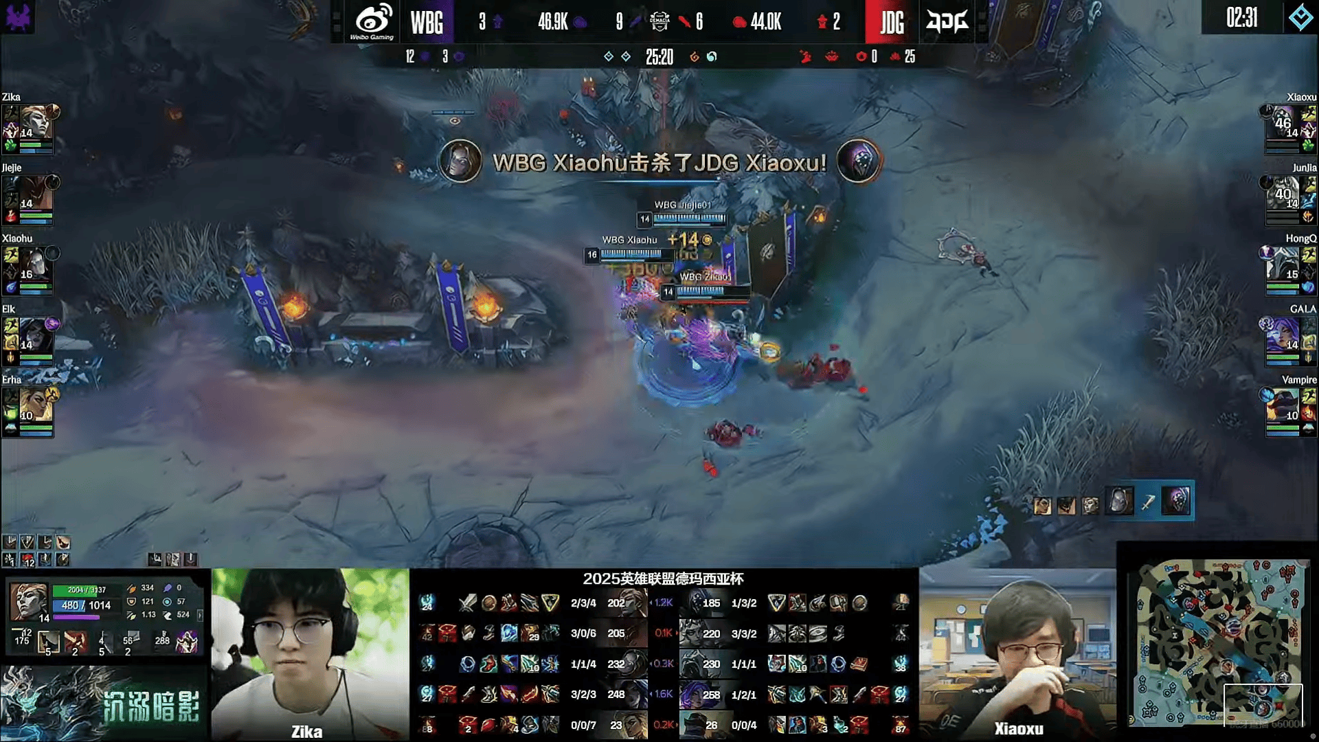 比赛第25分钟,JDG抓下被WBG反包围打出0换2,WBG随后拿下大龙。
