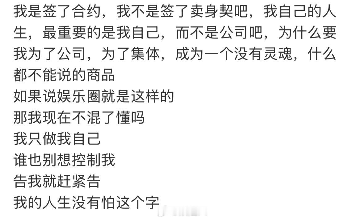曾艳芬喊话丝芭 曾艳芬喊话丝芭:如果说娱乐圈就是这样的,那我现在不混了懂吗?我只做我自己,谁也别想控制我,告我就赶紧告。我的人生没有怕这个字曾艳芬说告我就赶紧告