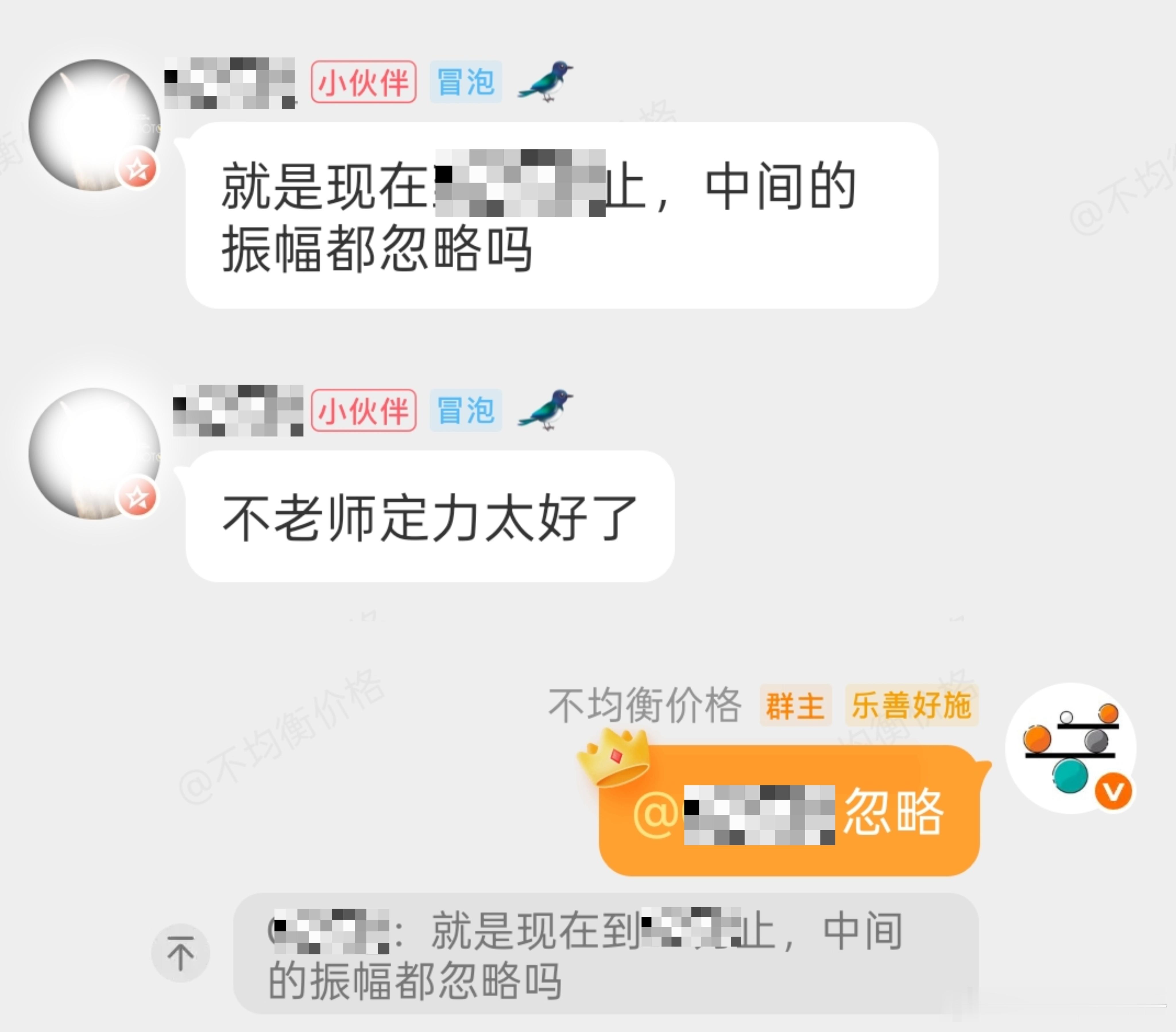 今天重仓股大涨后,本月继续跑赢股指,今年对于市场节奏的判断,我的马前炮遥遥领先。出于对市场进入宽幅震荡的判断,我这个月0换手率,满仓持有绩优低估值。而净值回撤有限,完全无视市场震荡。12月我一直多次强调,少博弈,满仓持有优质低估值资产可以安心渡过震荡。这段时间市场情绪一般,其实也是布局明年的黄金时间,忽略噪音!月底关券。私密券