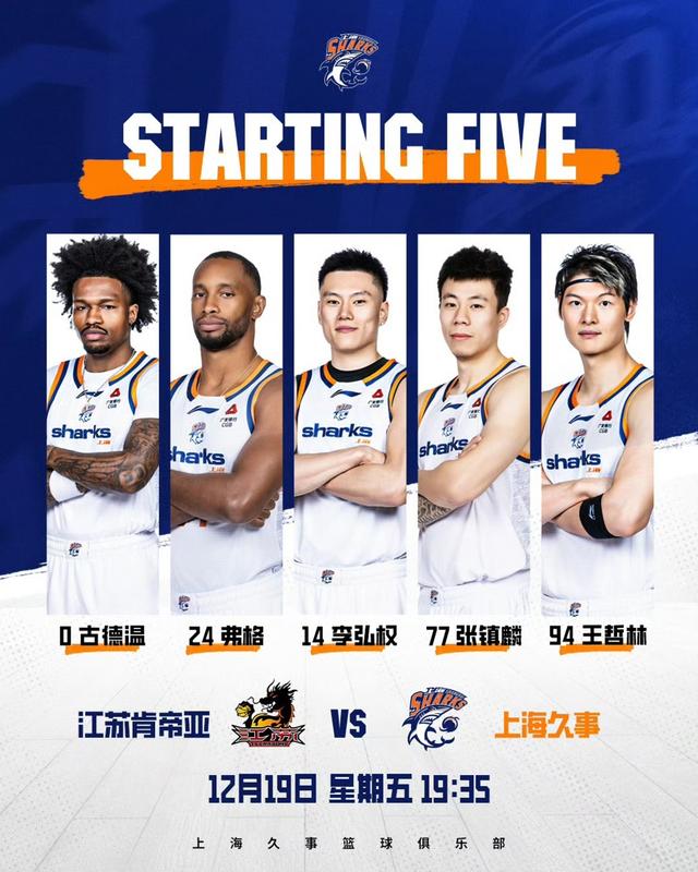 今晚CBA第三轮常规赛中,上海久事男篮客场挑战江苏肯帝亚队,最终以101比89大胜对手,取得第二场常规赛胜利。本场比赛,大鲨鱼主帅卢伟改变了前两场的先发阵容,这一调整也收到良好效果,最终帮助本队拿下比赛。