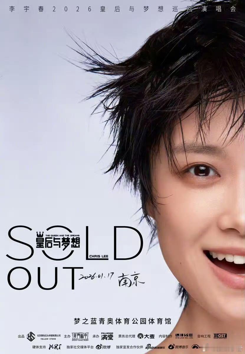 李宇春南京演唱会抢票 皇后与梦想南京站开票即告罄,恭喜成功抢到票的幸运歌迷!1月