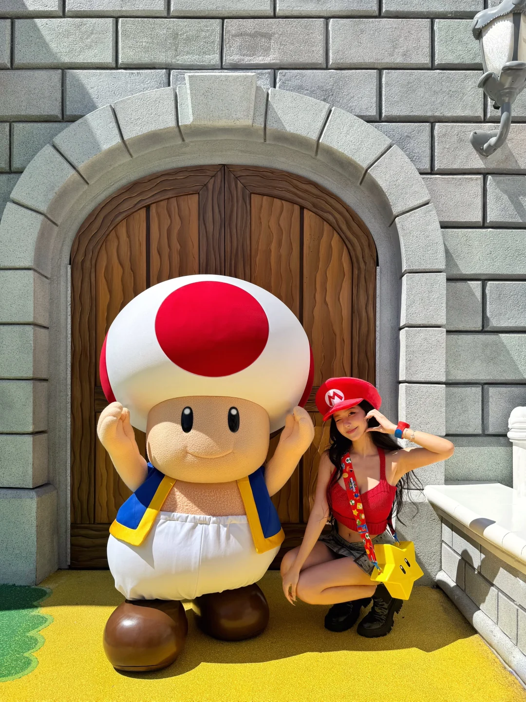 📸每隔1小时会有游戏人物出来合照,桃子公主在亭子里,马里奥和路易吉在中间(这个有人数限制,排队人多就不让排了)