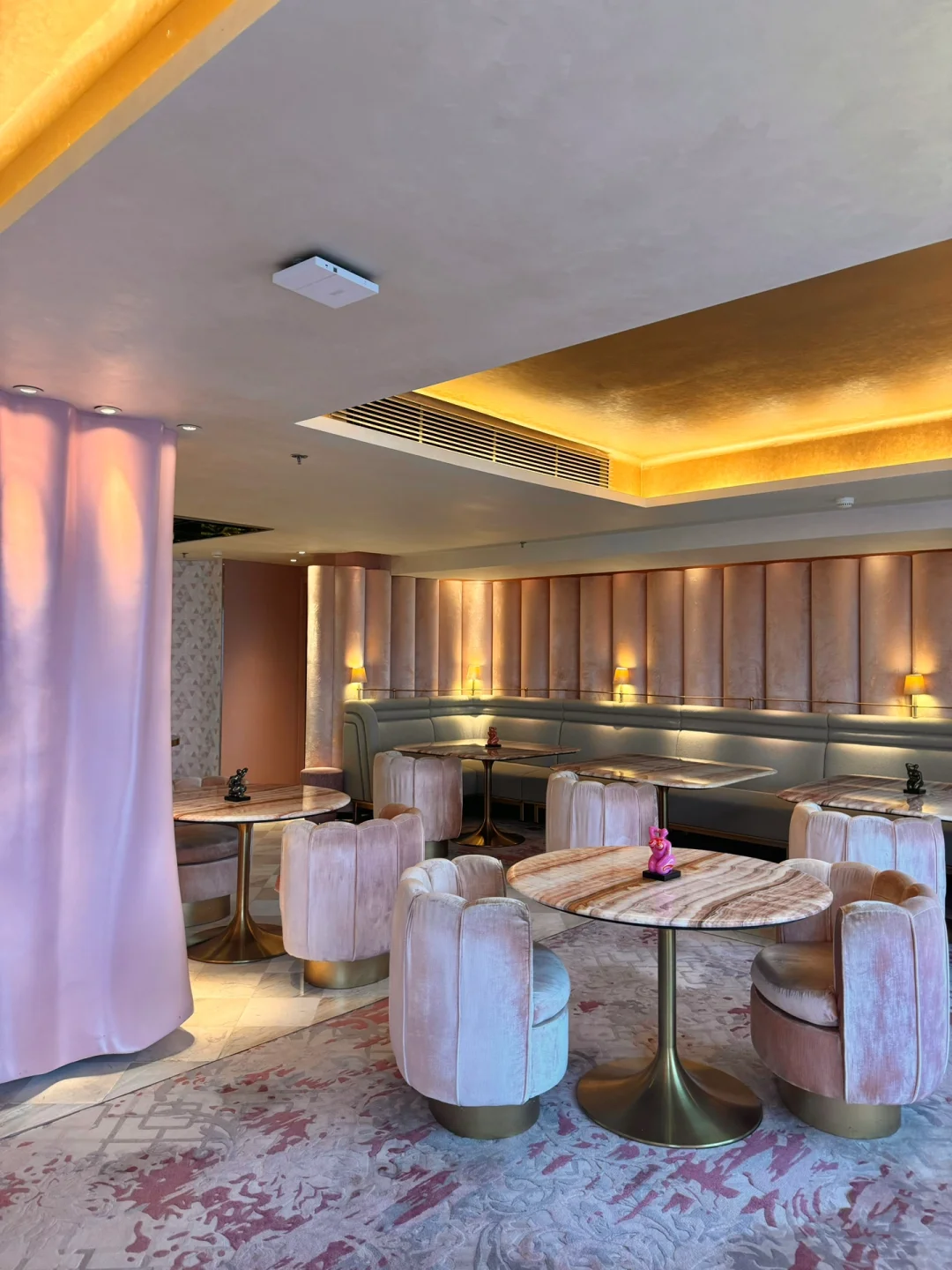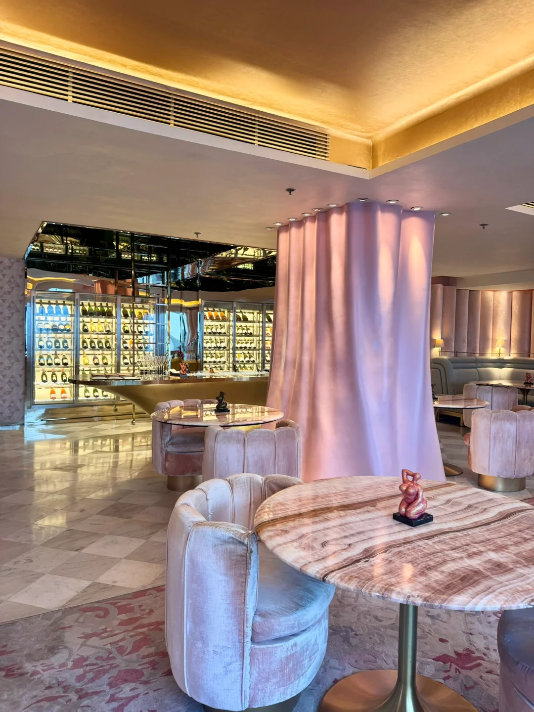 室内是全粉色的餐厅,室外是白色法式风情露台