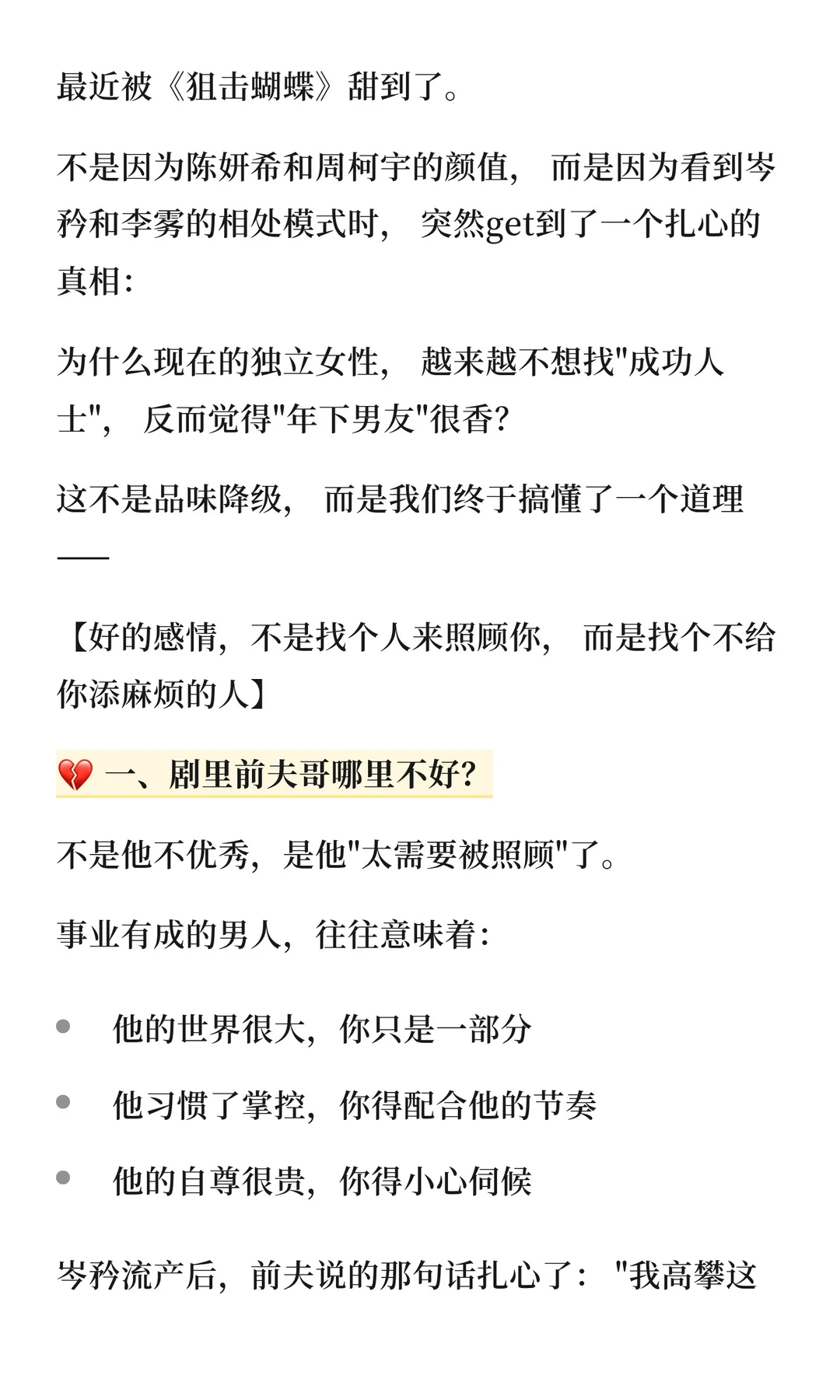 最近被《狙击蝴蝶》甜到了。 不是因为陈妍希和周柯宇的颜值, 而是因为看到岑矜和李雾的相处模式时, 突然get到了一个扎心的真相:为什么现在的独立女性, 越来越不想找"成功人士", 反而觉得"年下男友"很香? 这不是品味降级, 而是我们终于搞懂了一个道理 ——好的感情,不是找个人来照顾你, 而是找个不给你添麻烦的人✨