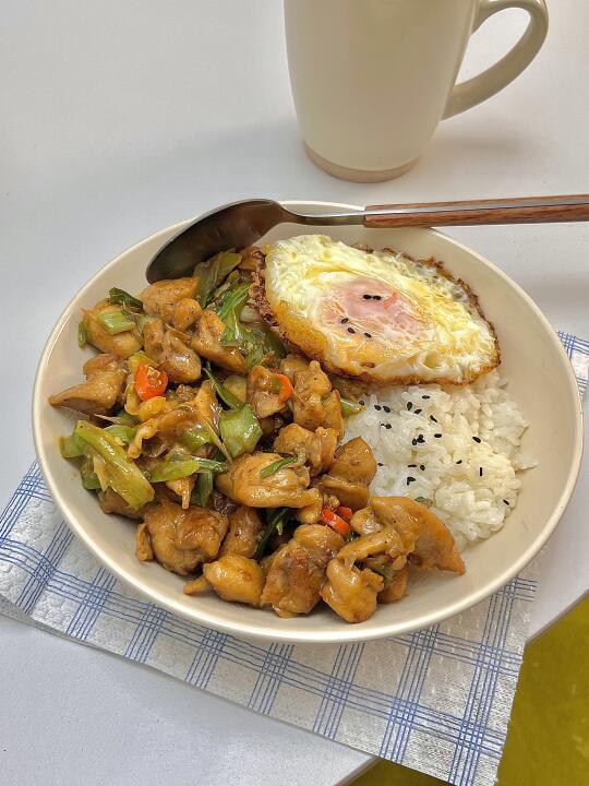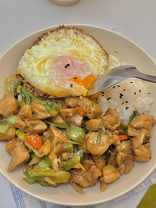 做菜我是认真的 好喜欢我的减脂餐,今天吃葱烧鸡腿~搭配煎的溏心蛋,营养高蛋白的组合了,近期的心头爱!鲜嫩多汁 葱香浓郁 巨入味~ 食材:鸡腿肉 鸡蛋 葱 小米辣 蒜 做法再图上⬆️快去试试吧~