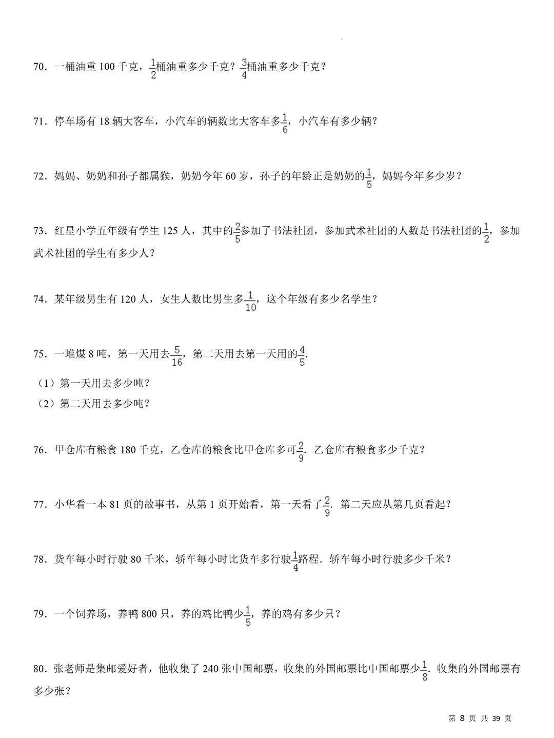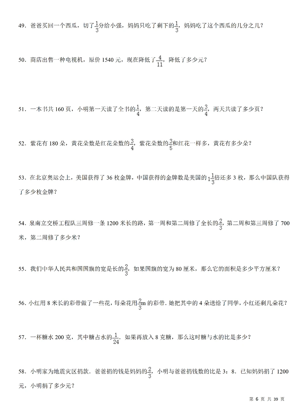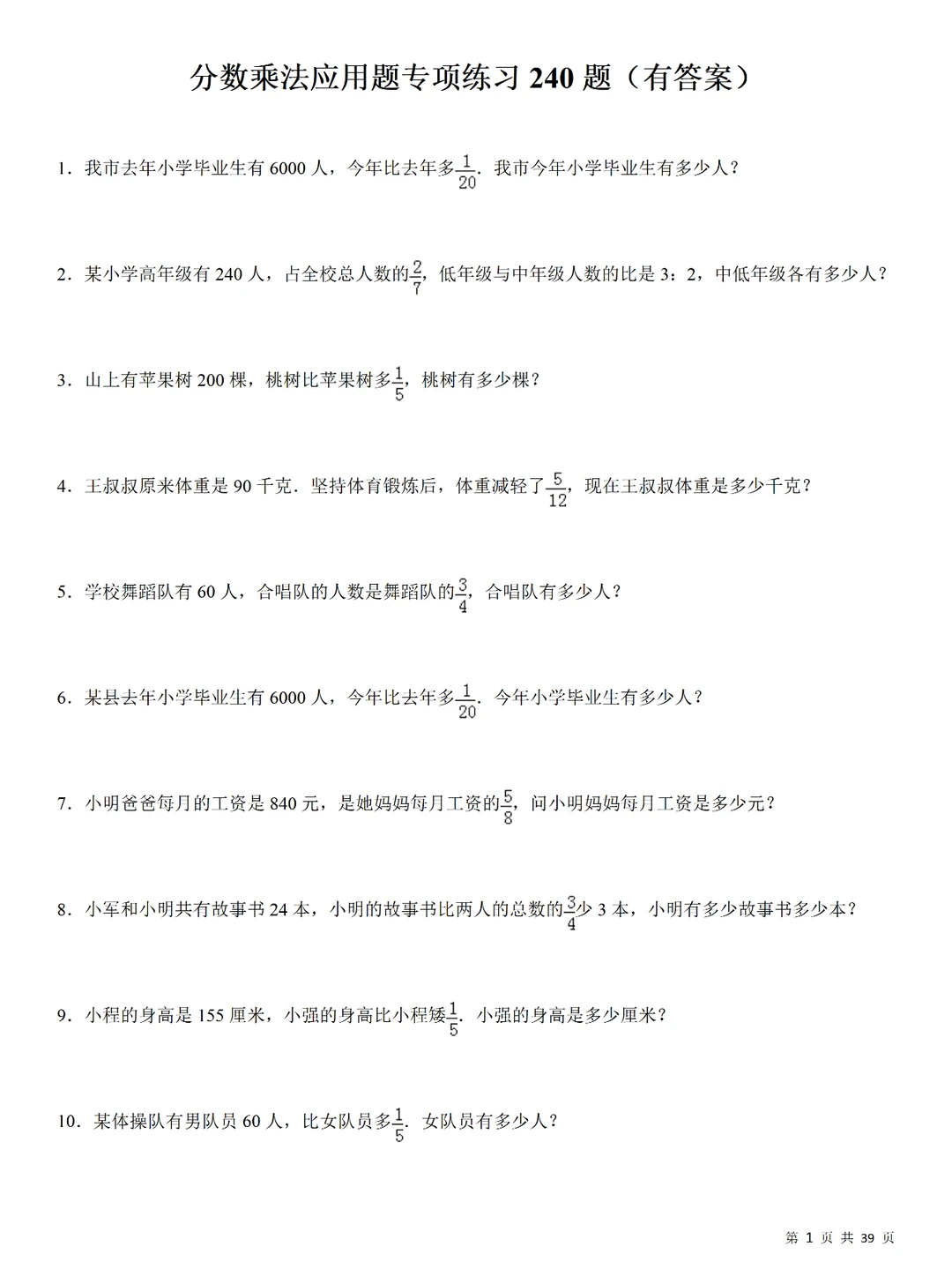 💥小学数学:分数乘法240道计算应用题,小升初专项提升,刷题必备❗