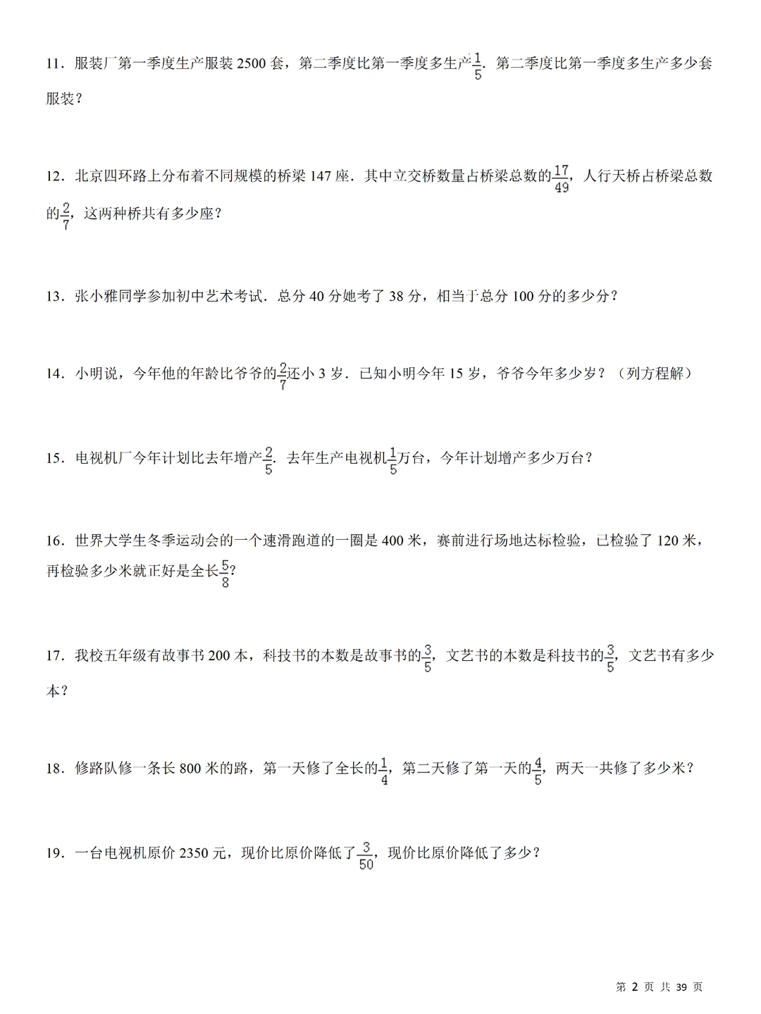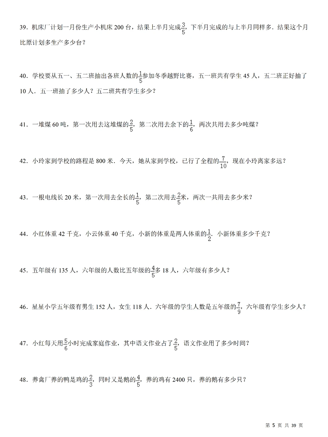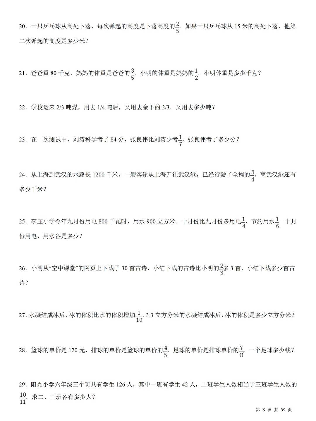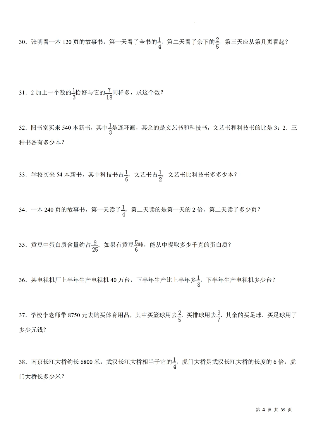 💥小学数学:分数乘法240道计算应用题,小升初专项提升,刷题必备❗