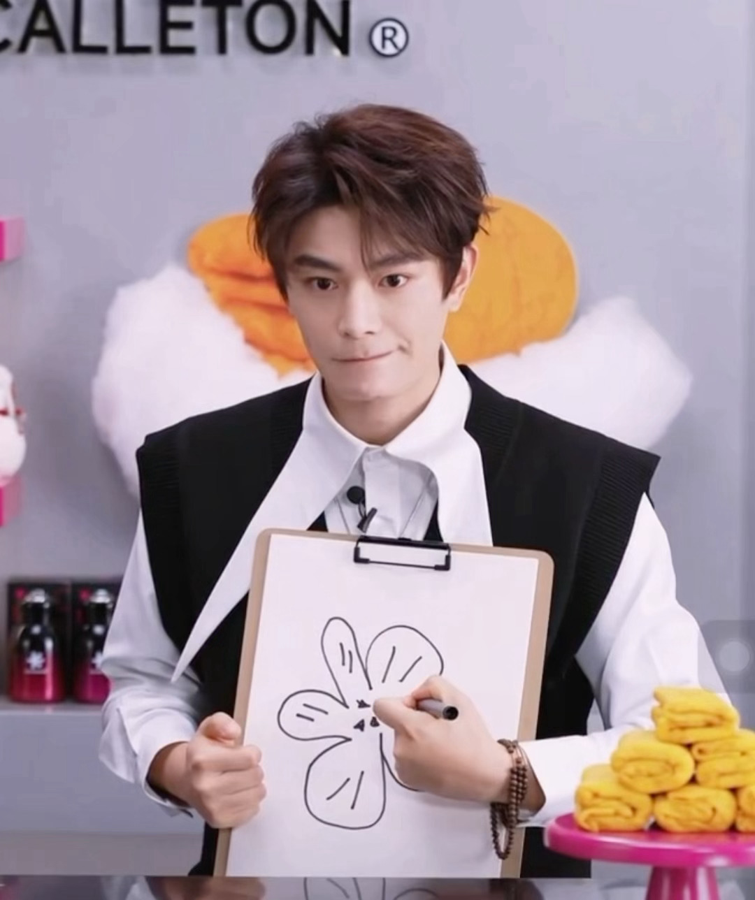 丁禹兮 今日品牌直播造型,黑白色彩搭配,别致领口、珠链装饰… 酷帅又青春的少年感,画画也趣味十足。