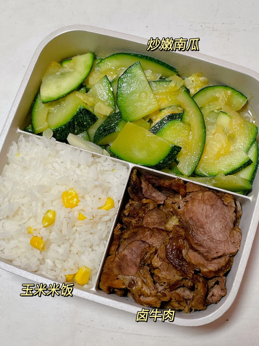 📍玉米饭+卤牛肉+炒嫩南瓜