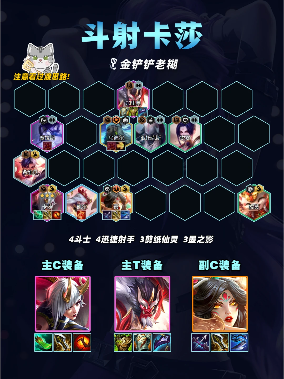 s11金铲铲433斗射卡莎,弹射瞬间秒杀后排。