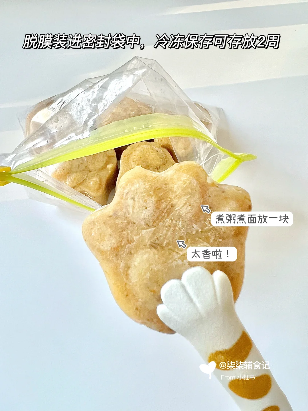▫️硅胶模具脱膜取出放密封袋里,冰箱冷冻保存2周(尽快食用完)。