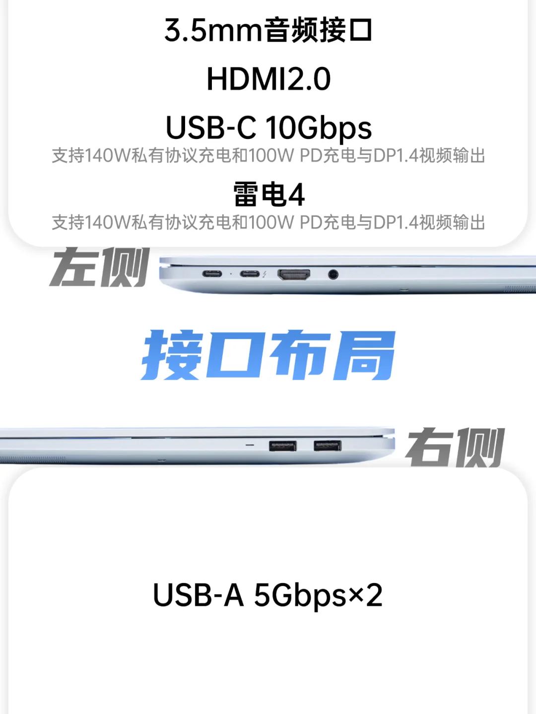 ●接口方面,速率不如联想,但比荣耀多了个雷电4;