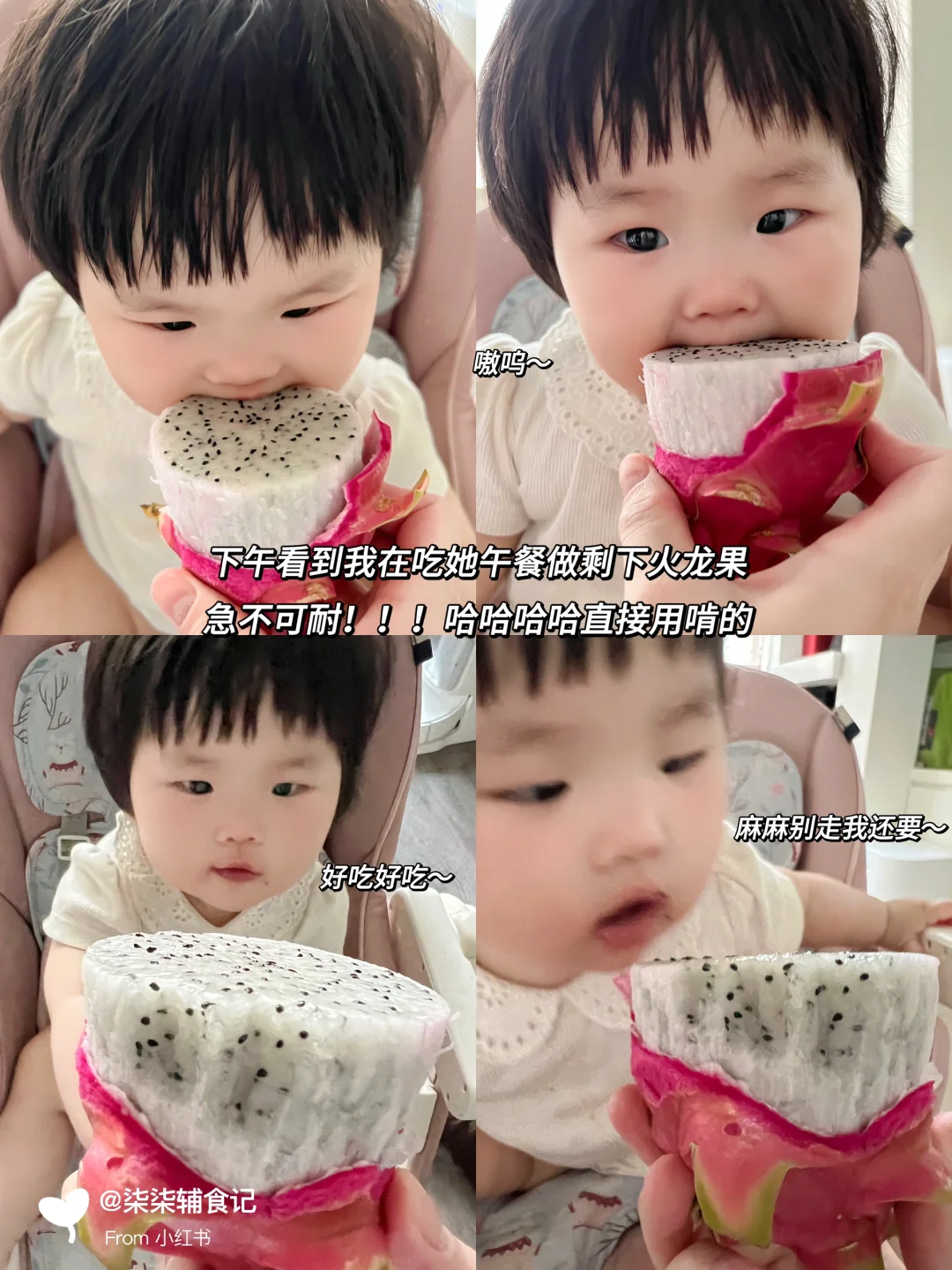 下午水果火龙果,真的是笑死我啦哈哈看到我在吃,柒柒也想要,索性就一整个给她啃,吃的倒是蛮开心的😁