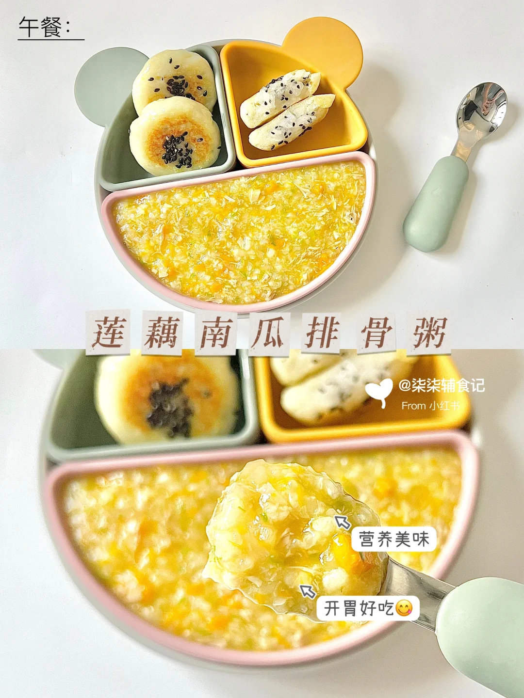 午餐莲藕南瓜排骨粥和山药夹心饼,这个粥好好吃🤤柒柒全部吃光光了耶哈哈好开心~姐妹们快安排给宝贝们吧~