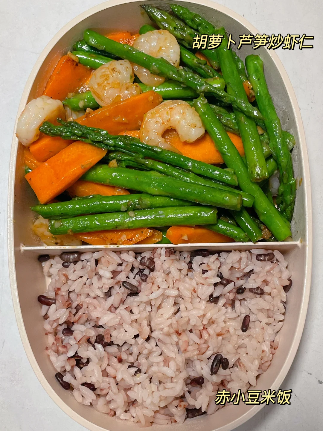 📍赤小豆米饭+胡萝卜芦笋炒虾仁