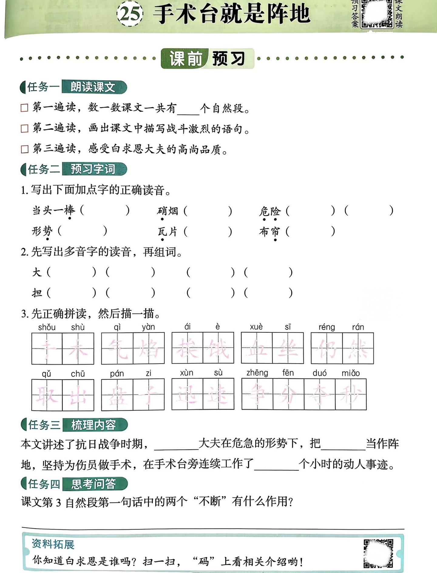 三年级上册语文《手术台就是阵地》笔记。 白求恩:加拿大共产党党员,国际主义战士,胸外科医生。他曾率领医疗队到达延安,以精湛的医疗技术为中国的抗日军民服务。知识点总结预习课文课堂笔记