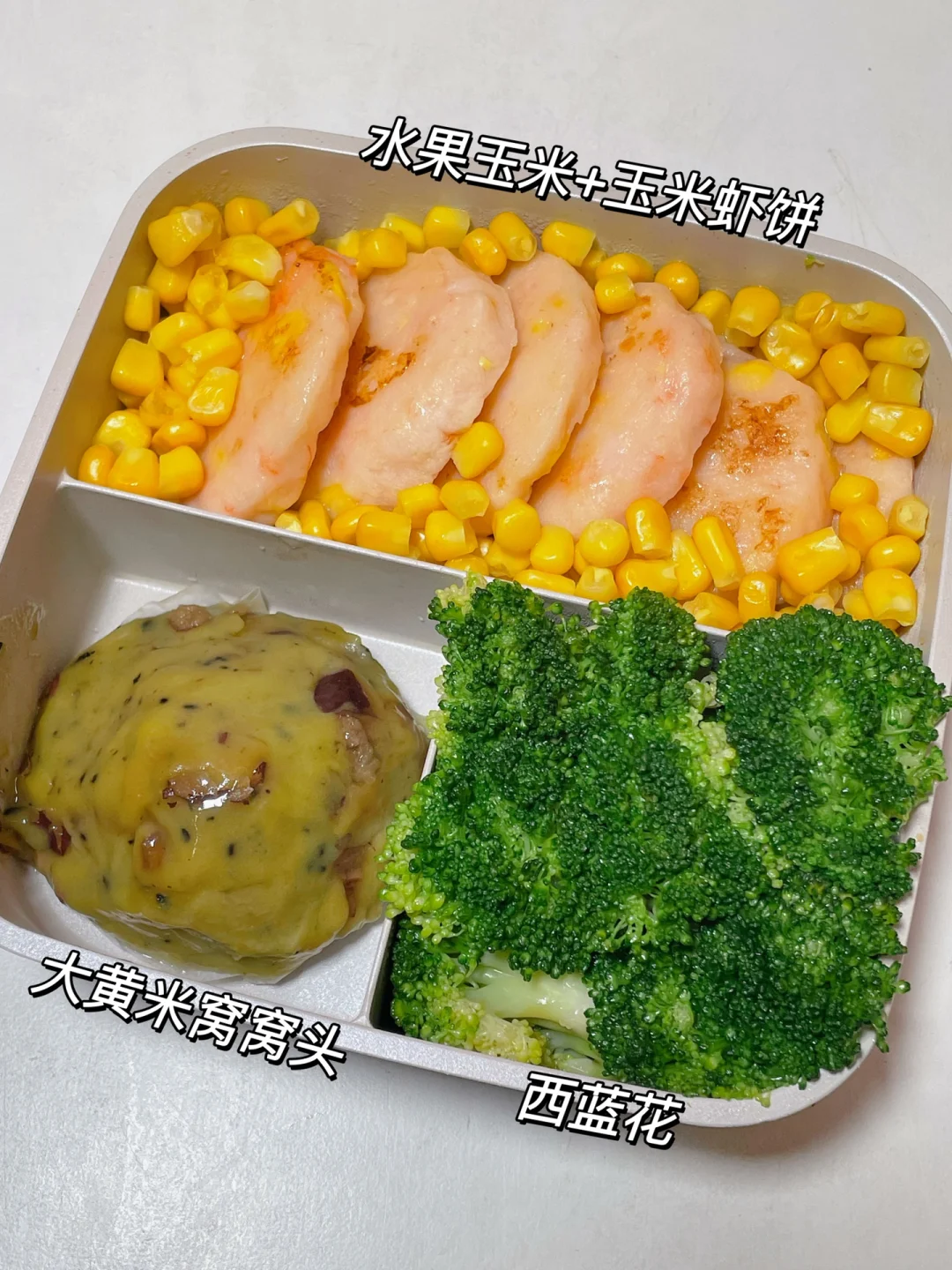 📍窝窝头+水果玉米+玉米虾饼+西蓝花