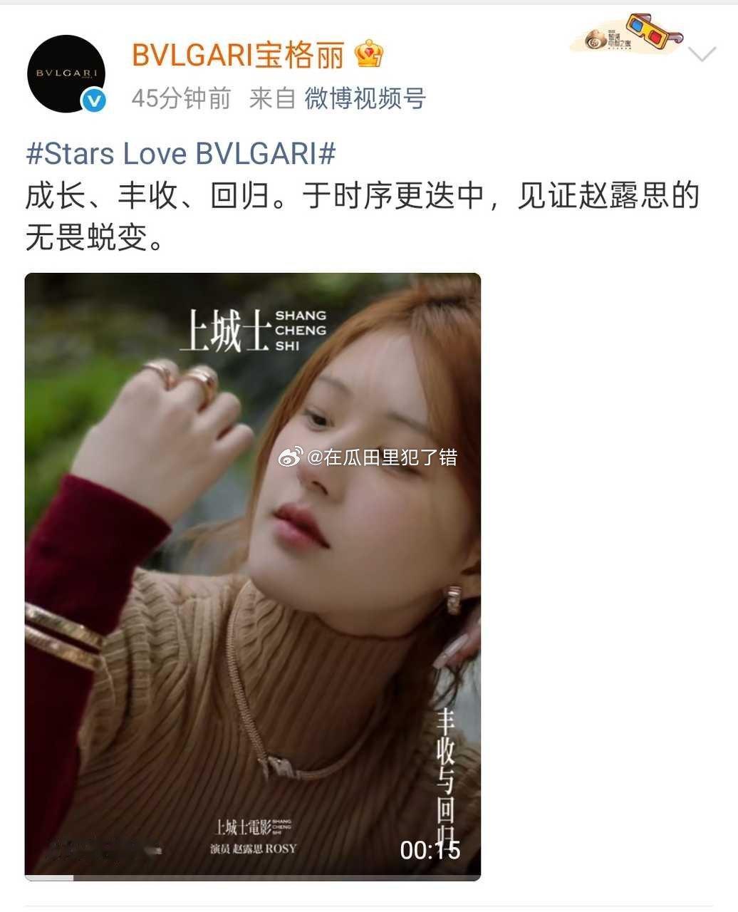 上城士闭年刊推封的高奢宝格丽连续更新三条赵露思相关博,这就是爆剧🌸代言人的商业