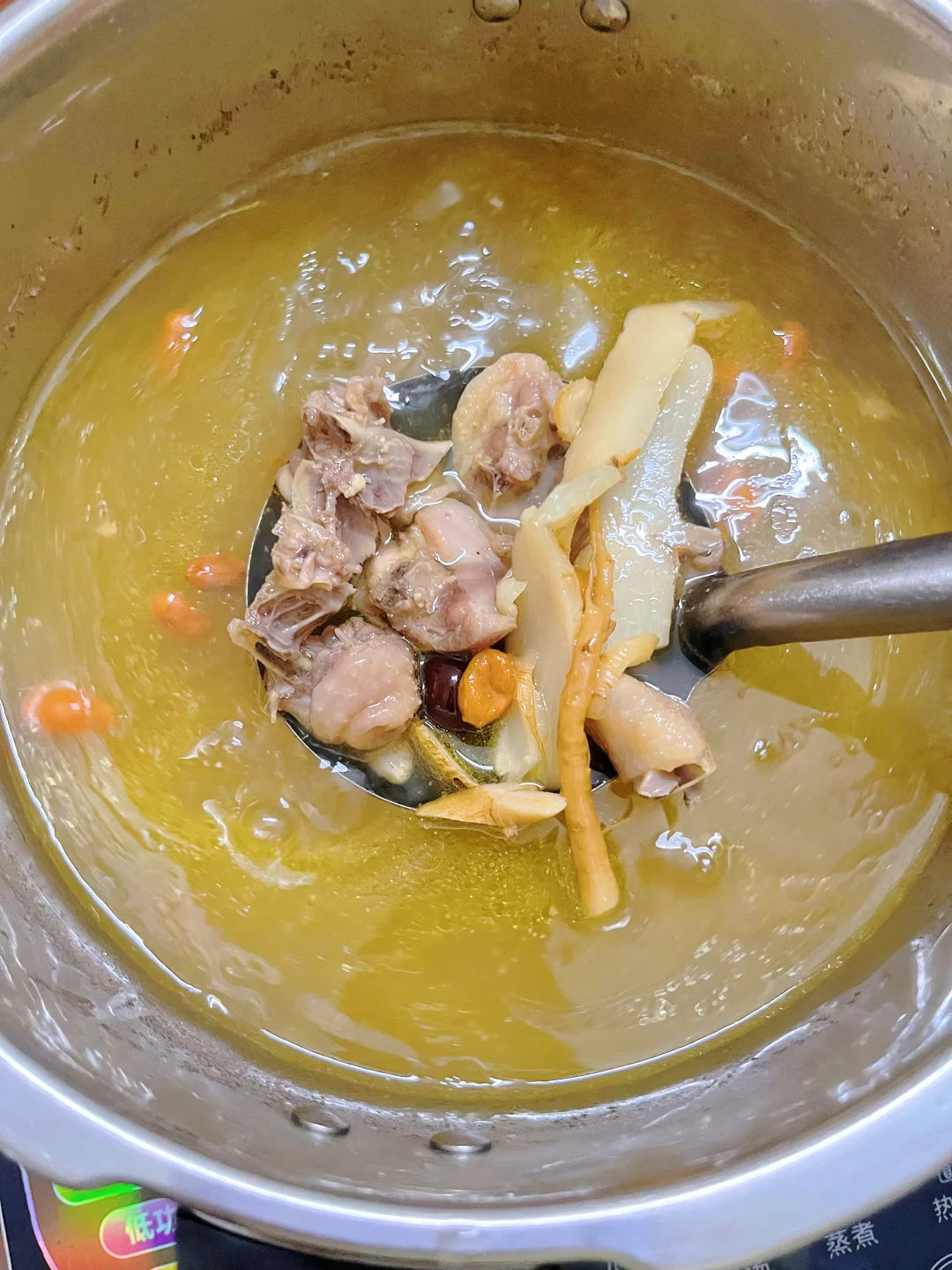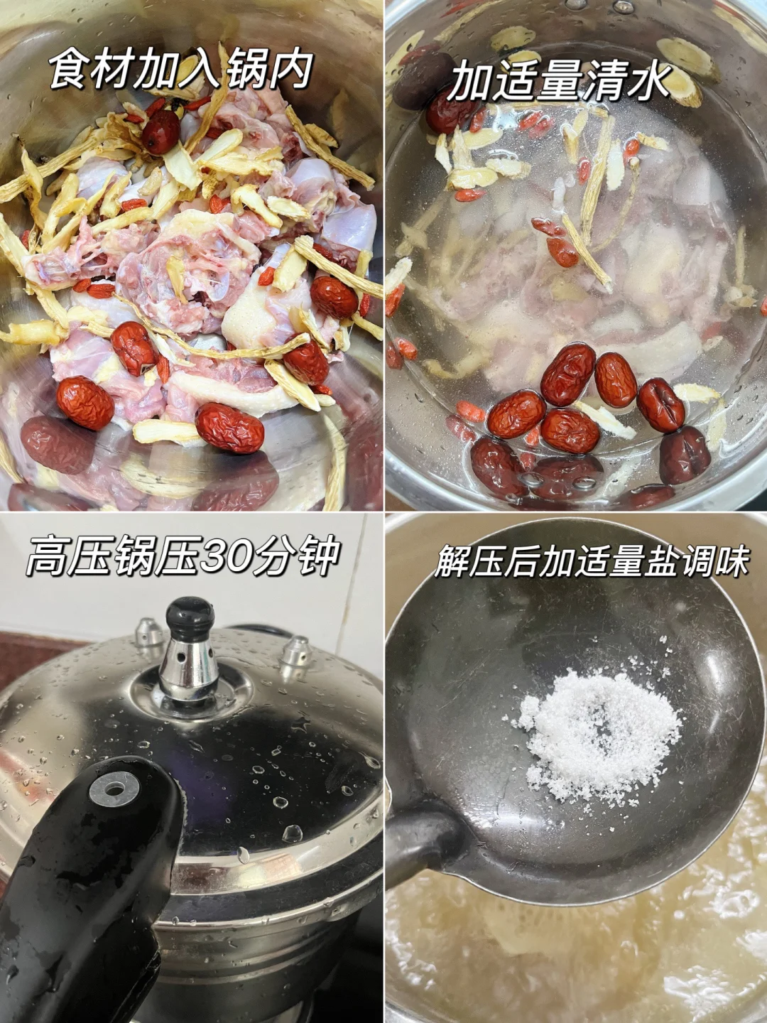 🔥 老鸡双补汤,高压锅30分钟搞定!这锅汤让我素颜都敢出门~ 准备食材🫕 老鸡、红枣、花旗参、黄芪、党参、麦冬、玉竹、枸杞 做法🥘 1️⃣ 【食材准备】 老鸡块用淀粉抓洗干净焯水,红枣去核,其它食材简单冲洗 2️⃣ 【高压锅快煮】 所有食材放进高压锅,加入适量清水,上汽后转小火压30分钟,解压后加适量盐调味。 这一锅汤色金黄自带回甘,鸡肉软烂一抿就化,花旗参的甘香完全融入汤里,喝完脸颊红扑扑!熬夜后喝一碗超治愈~