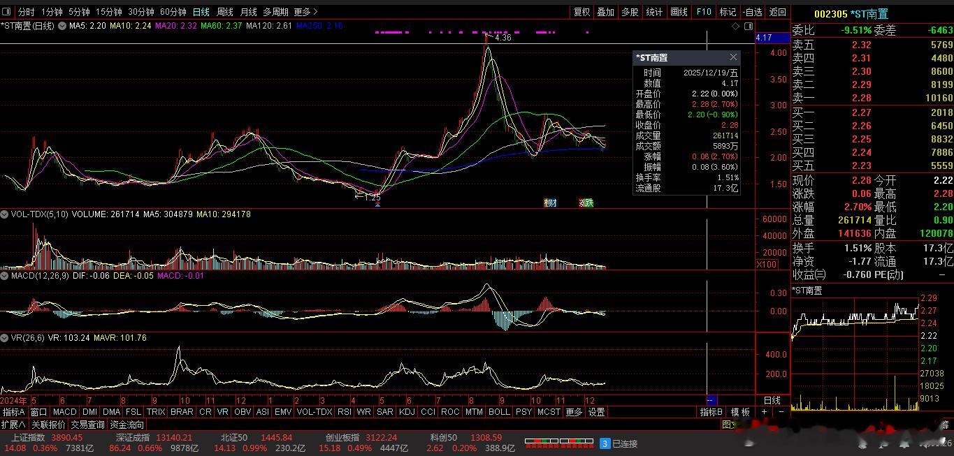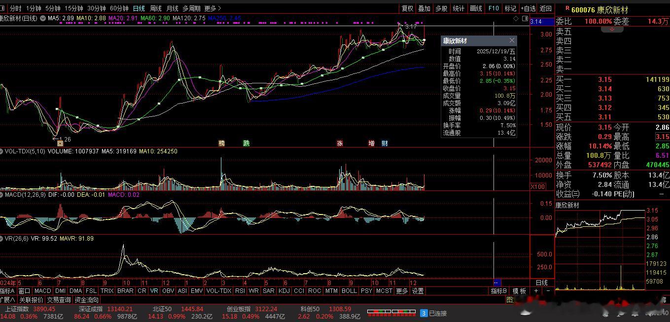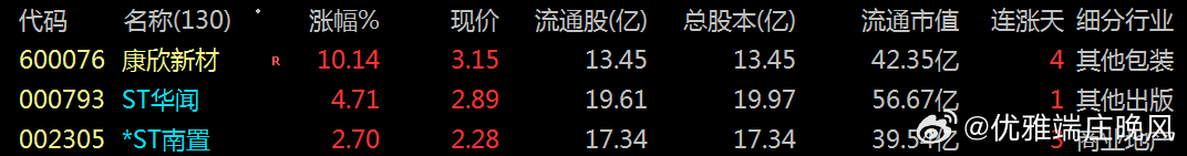 【财富晚茶】三元股市收评:沪指涨0.36%:体育强势上扬林业探底导语:作者系《网易号》优质财经领域创作者。曾经原创作者和知名网易号旅游领域创作者。大跨度行业等的写作,颇受网友喜爱。作品发表于2025.12.19.15:18优雅端庄晚风。一、*ST星光:八年箱底002076 *ST星光 盘中 03涨1、八年筑底:底部震荡今日视野:前期双顶,触底盘升。2025-12-19 截止15:00:收盘股价:2.03元,上涨 2.01%。成交总量:109136手。成交金额:2205万元。总换手率:1.05%。总市值达:20.43亿元,流通市值:20.43元。2、汽车照明:锂电设备主营业务:LED照明-紫外消杀-汽车照明-锂电池生产设备研产和销售。公司品牌:光科技应用-锂电池头部企业。3、营收良好:净利减亏业绩盈亏:2025-09-30 三季度报:公司营收:1.6865亿 同比增36.04%,实现净利润320.2526万 同比增256.29%。二、多空搏杀:沪深红盘1、追踪盘面:蛛丝马迹沪深场景:早盘:高开二针,六涨二跌。午盘:一跌二涨,一跌三涨。尾盘:沪指:三涨二跌,次高红盘。看点之一:沪深高开:盘中震荡:瞬间上扬。看点之二:强势板块:创指强势:涨幅超1%。看点之三:沪深北市:合计成交:17489亿元。场内个股:4477股飘红。2、板块涨跌:风口依然涨跌观察:板块见证:板块上涨:体育、地产、食品饮料、纺织服装、汽车、钢铁、医药等。板块调整:林业、元器件、玻璃纤维等。概念活跃:海南自贸、可控核聚变、零售、锂矿等。3、技术看盘:涨跌位置观K线提示:精彩多空博弈。12月22日:沪指突破阻力:03902点看涨,前程似锦;跌破支撑位:03871点看跌,日暮途穷。深指突破阻力:13217点看涨,鹏程万里;跌破支撑位:13070点看跌,不堪造就。三、三元板块:风口潜水1、追踪盘面:视角视野三元强势,沪深反弹。今日三元板块:119股上涨,涨幅5%以上:11股涨停板。7股下跌,跌幅5%以上:4股跌停板。涨幅0%:4股0停板。涨幅0.00%+上涨个股:4+119=123股票赚钱。沪深两市:合计成交17489亿元。总体归纳:三元股票:盘口强势。2、追踪盘面:主力进退换位思考:沪深走强,尾盘震荡。沪指距9:31-15:00:前2小时放量盘升,中1小时略量盘跌,后1小时略量盘升。深指距9:31-15:00:前1小时放量盘升,中2小时略量盘跌,后1小时略量盘跌。沪深两市:合计成交:17489亿元。四、透析个股:聚焦涨跌1、涨幅榜眼:处排查摸主旋律:涨幅榜之中:寻找启动600076 康欣新材 000793 ST华闻 002305 *ST南置涨幅榜-1:600076 康欣新材主营业务:集装箱底板-优质新型木质复合材料等研产和销售。公司品牌:国内装配式木建材进口替代头部企业。涨幅榜-2:000793 ST华闻主营业务:文旅业务-传媒景区开发-游戏运营-车联网服务等研产和销售。公司品牌:科技特色文旅头部企业。涨幅榜-3:002305 *ST南置主营业务:商业地产等研产和销售。公司品牌:国内领先城市运营服务商和头部企业。2、跌幅榜眼:处排查摸主旋律:跌幅榜之中:寻找金子300344 *ST立方 002231 *ST奥维 000793 ST华闻跌幅榜-1:300344 *ST立方主营业务:智能软硬件-数字化智能-数字智能服务等研产和销售。公司品牌:新型数字基础建设的数字科技云服务商。跌幅榜-2:300391 *ST长药主营业务:医药制造-通用设备-新能源等研产和销售。公司品牌:亚洲最有影响力道地药材全产业链头部供应商。跌幅榜-3:002231 *ST奥维主营业务:军队电子信息化-音视频指挥系统-网络通信等。公司品牌:国内移动通信运营商无线网络覆盖设备供服商。3、潜力榜眼:处排查摸主旋律:潜力榜之中:寻找估值002496 *ST辉丰 300301 *ST长方 000669 ST金鸿潜力榜-1:002496 *ST辉丰主营业务:生物农资-农资电商-石化仓储供应链-项目投资。公司品牌:中国领先亚临界小分子高温裂解工艺高科技专利产品和头部企业。潜力榜-2:300301 *ST长方主营业务:LED照明光源器件。公司品牌:LED照明光源器件头部企业。潜力榜-3:000669 ST金鸿主营业务:天然气。公司品牌:国内最具实力的综合性清洁能源服务商。五、本创作者:优质网易投资投机迷茫之中:给予尽可能有帮助:资本市场风险自负。(优雅端庄晚风《网易号》优质财经领域创作者和原创作者; 违者必究)