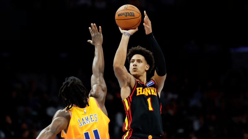 本场比赛,老鹰球员杰伦-约翰逊出战39分钟,27投16中,其中三分球9投4中,罚球7投7中,得到43分11篮板9助攻1抢断1封盖。