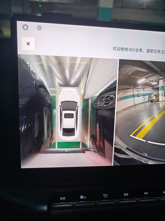 现在的车位都好小 我的车位靠近柱子,最主要是边上还是一辆宝马,车身比较宽,搞得我每次回家停车很被动,如果倒车的时候太靠近柱子,至少要多倒一两把,靠的太近又怕开门碰到人家,没办法,每次停车都靠近一点柱子吧,刚提车那会对车子不熟悉,哪怕看着全景影像倒车也怕怕的,现在习惯了还比较好,每次基本一把能进,最多就是第二把稍微调整一下就好了,现在倒车都不需要看后视镜,就看屏幕里的360全景影像,看着屏幕上的黄色引导线就能倒车了,车尾进入车库后我只要把两条黄色引导线对齐车位的白线就百分之百能停的端端正正,不过我个人建议还是多看一下左侧的图像,因为是全景的,车尾部的那个映像有点变形的,车子快入库的时候最好瞄一下后视镜,现在我已经习惯了帝豪的全景影像倒车入库了,老婆也是新手,没有全景影像估计也不敢倒车,我觉得有些功能可以没有,但是这个功能还是非常实用的。