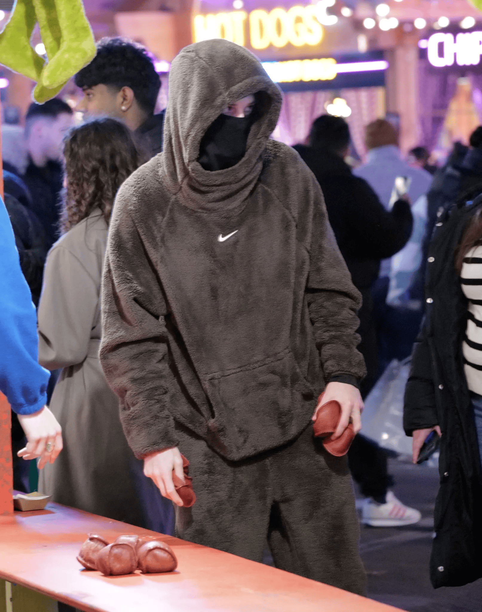 报道称,当天OliviaHolder手捧着一只巨型泰迪熊亮相,她身旁的帕尔默则一身宽松耐克运动套装,头戴兜帽、遮着脸,竭力想要低调出行。不过,现场还是有不少人“认出”了帕尔默。
