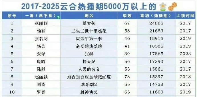 杨幂《三生三世十里桃花》和赵丽颖《楚乔传》哪部是云合史冠